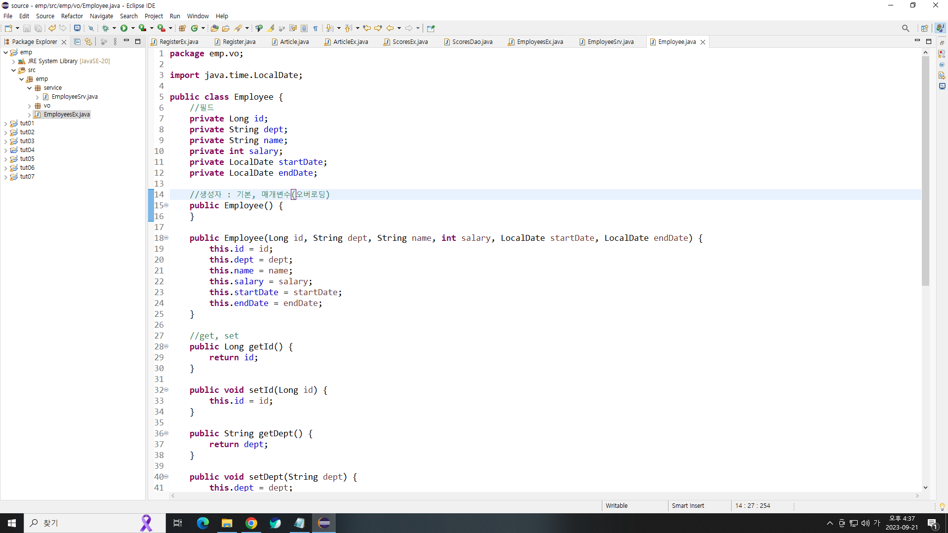 구현 : 필드 -> 생성자 -> getter, setter -> 오버라이딩(toString)