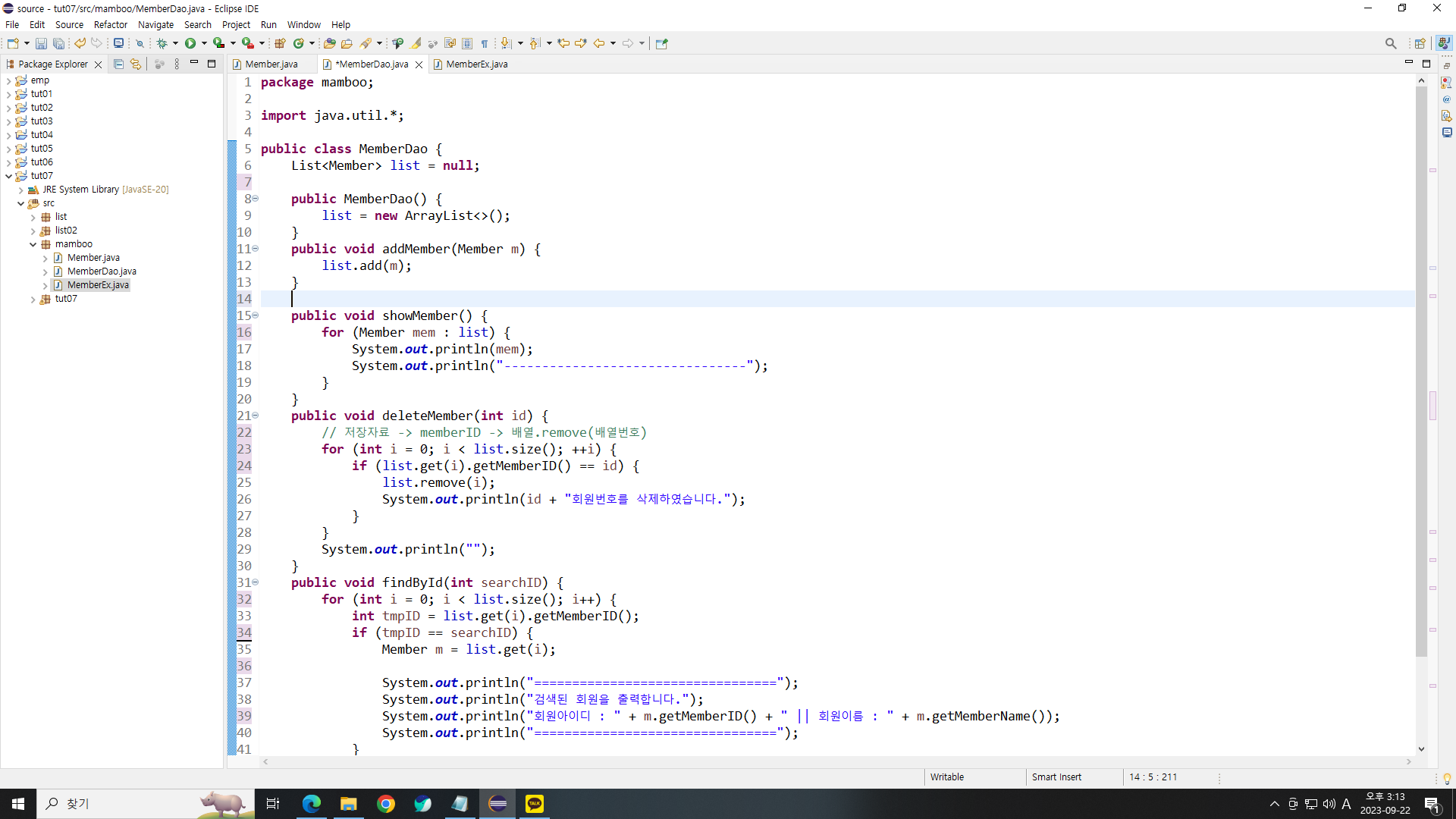 MemberEx.java(실행파일)