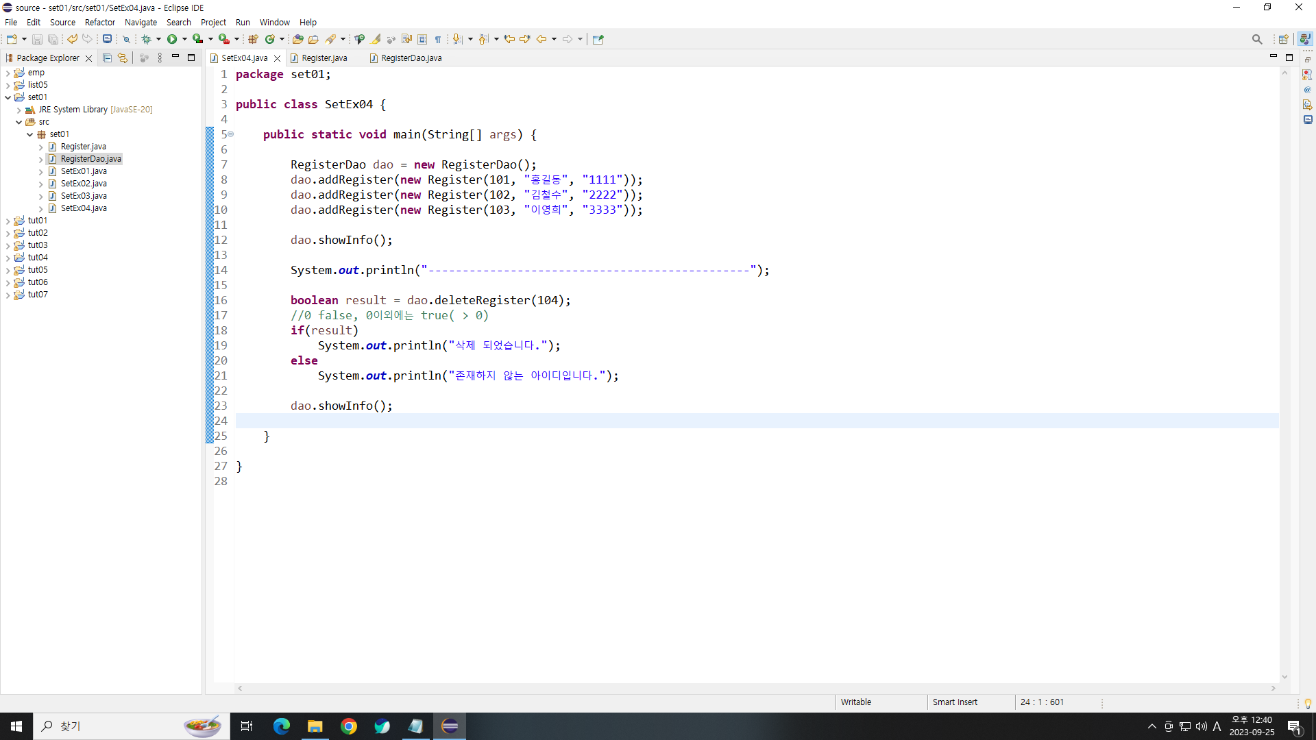 지난시간 배운것에대한 복습예제 : 회원정보를 출력하세요.(생성자사용)
