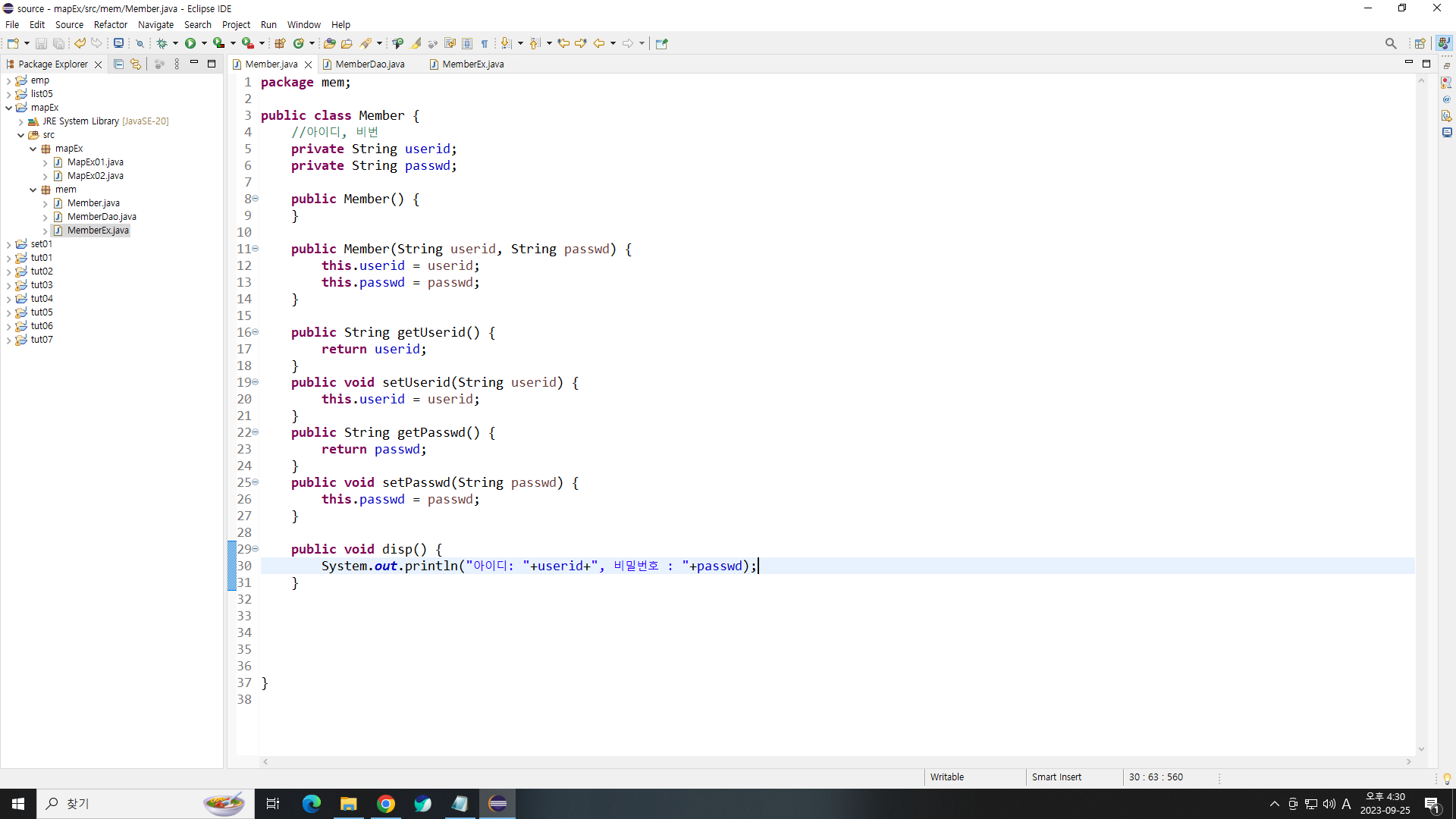 MemberEx.java(출력)