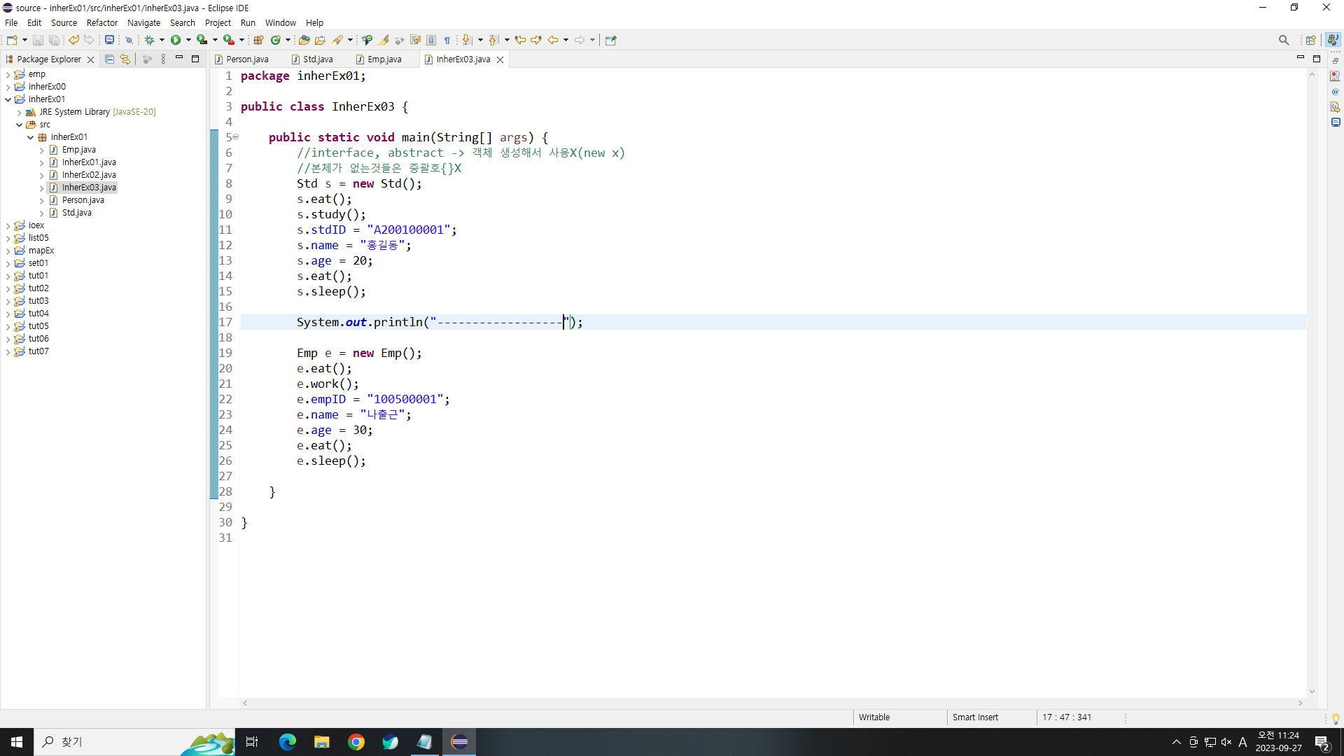 C++ -> 다중상속 -> 상속(자바) : 강제x -> 인터페이스(다중) : 강제성