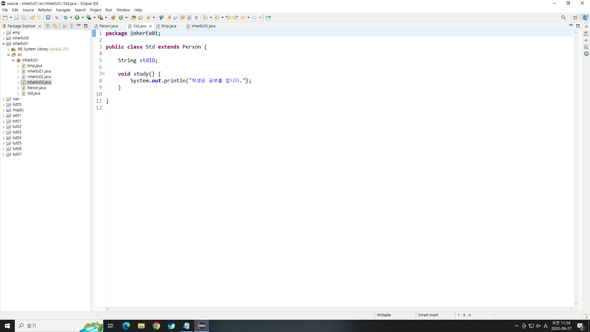 * 객체 => 상속 => 프로그램 확장(회원가입->게시판->다중->일정...)