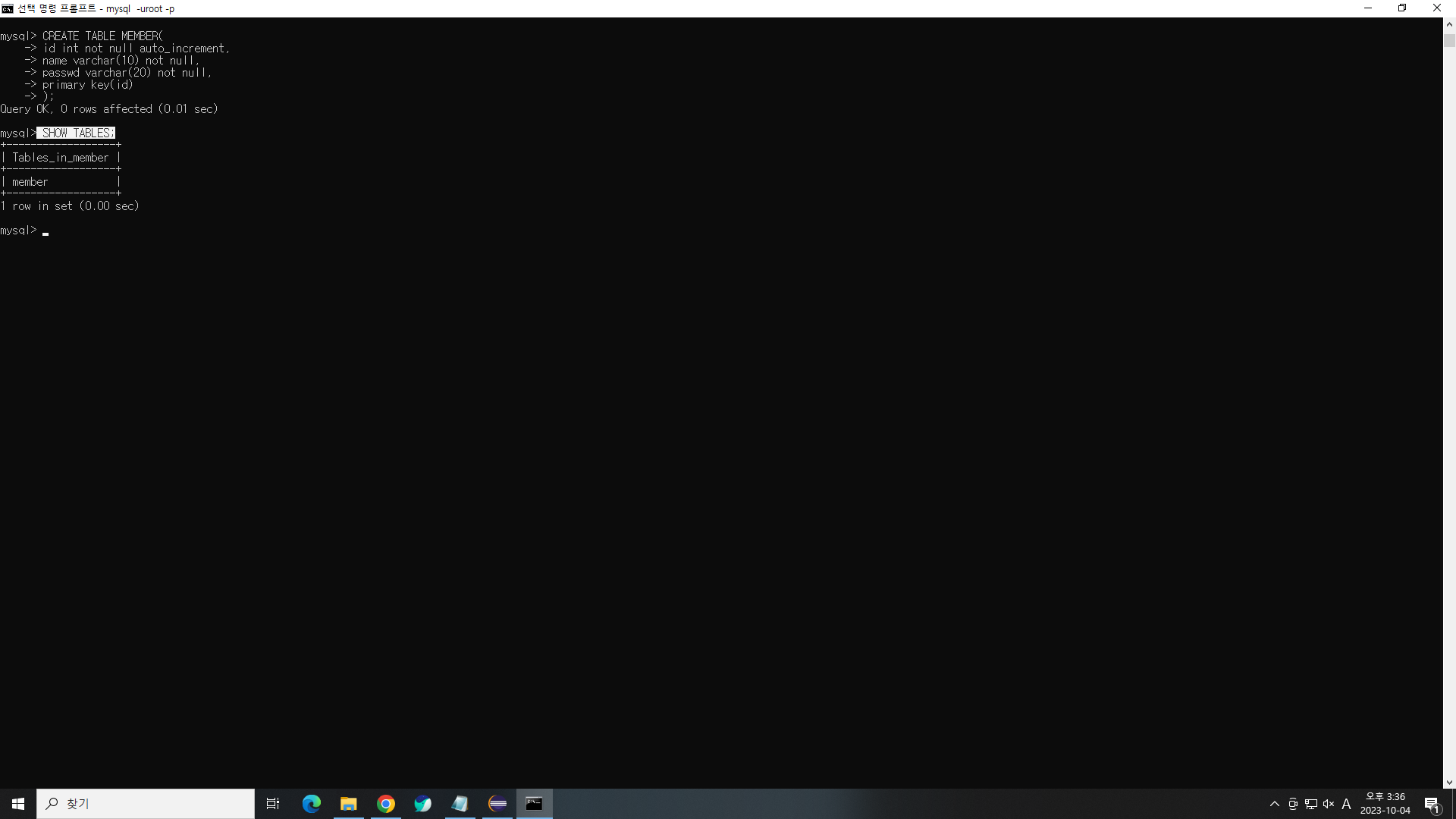 5-1. 테이블 생성 -> 자바에서 필드명과 동일하게 작업
