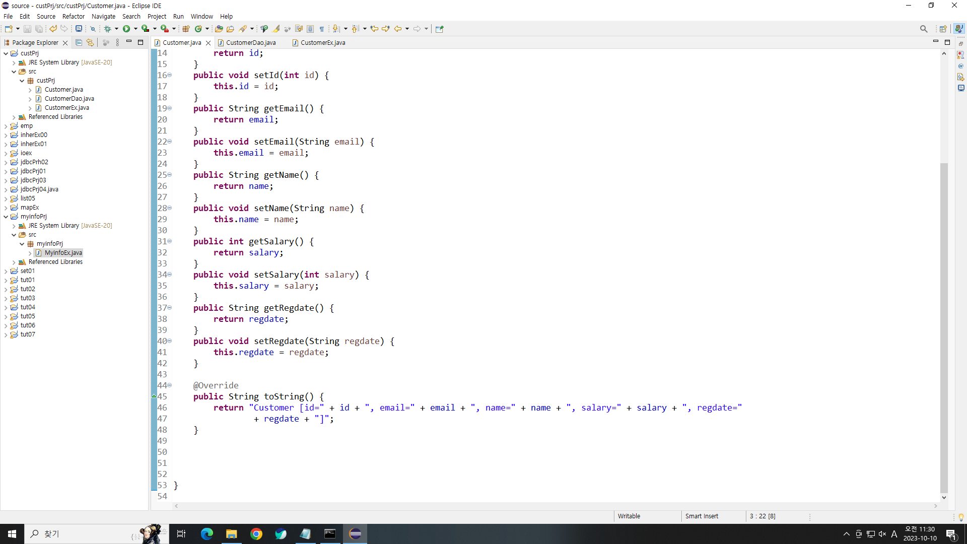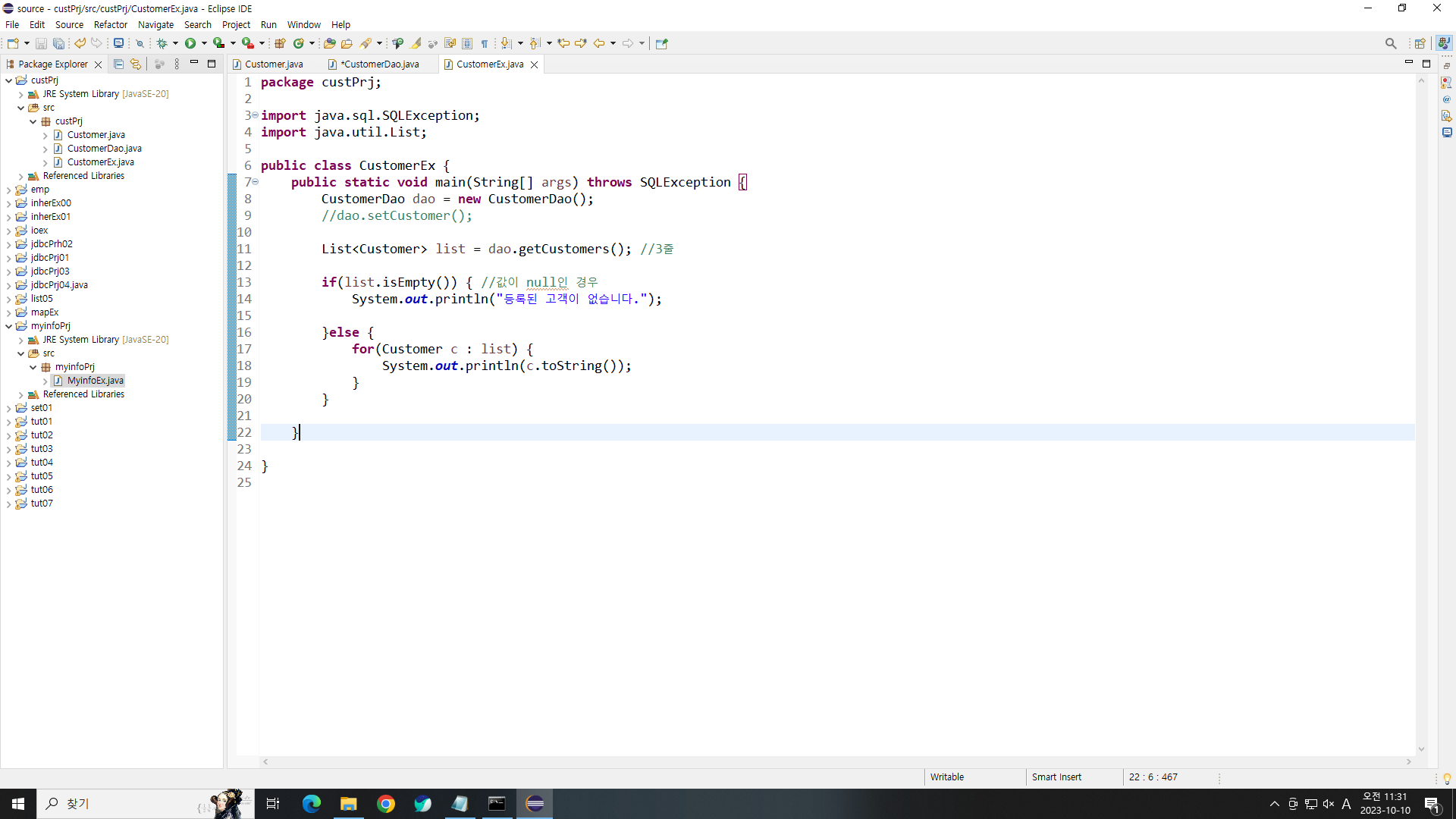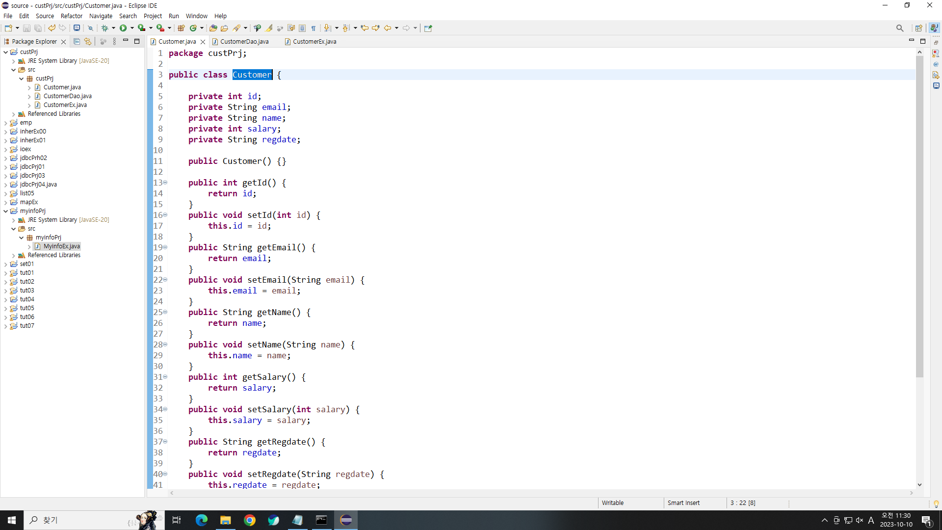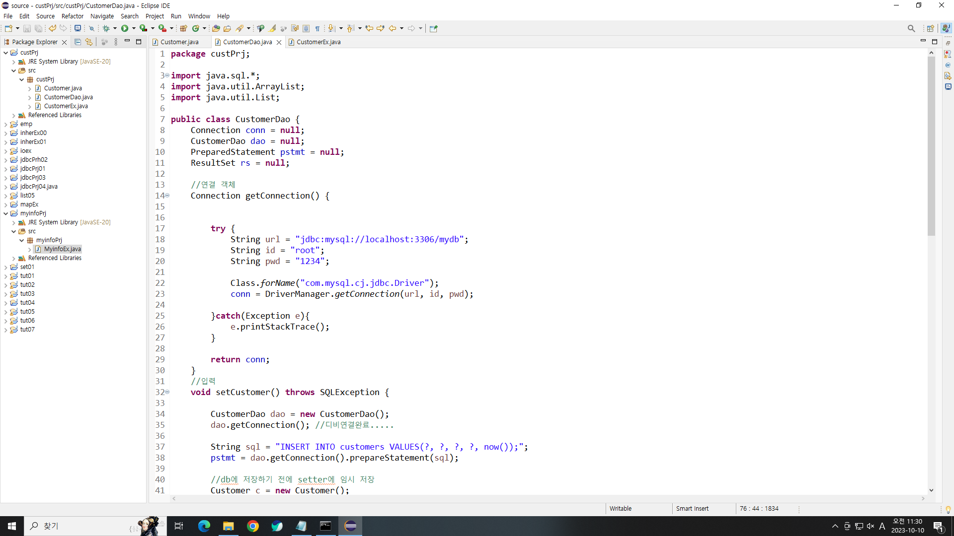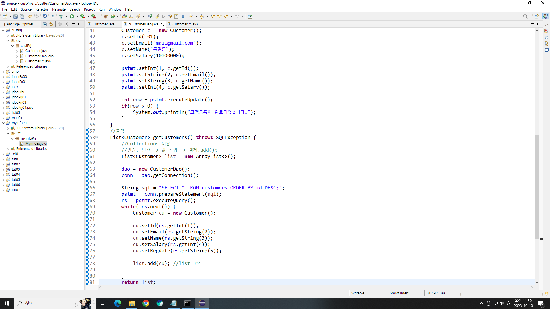 CustomerDao.java : 실행파일로 출력파일과 db와 연결해서 진행