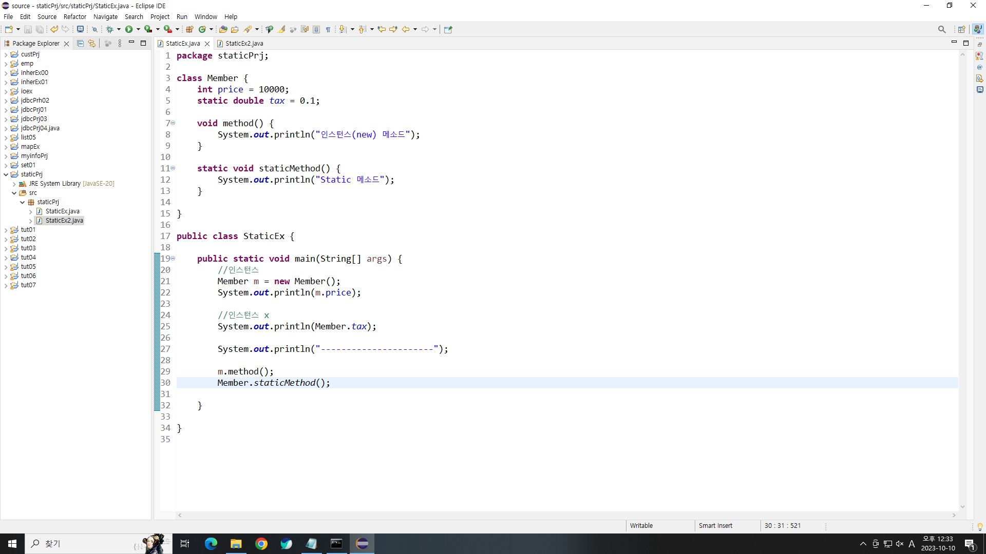 static -> new(인스턴스화)할 수 있지만 -> 클래스명.메소드명();으로 사용