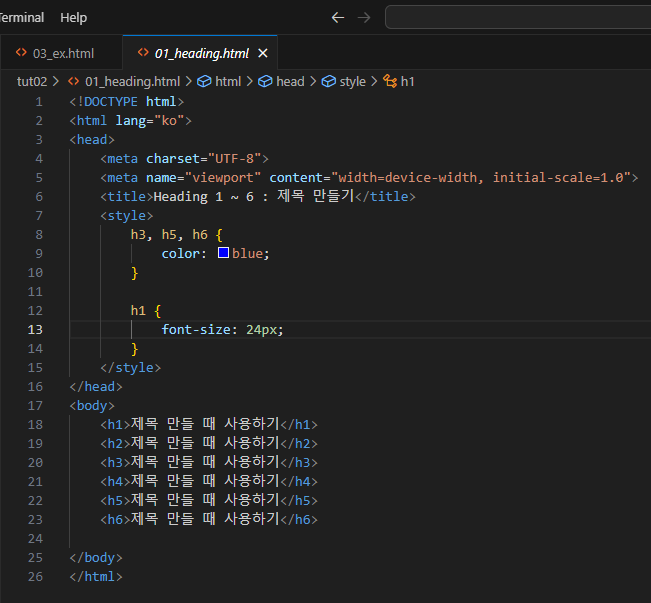 제목 또는 중요한 내용이라 생각되면 h태그 사용