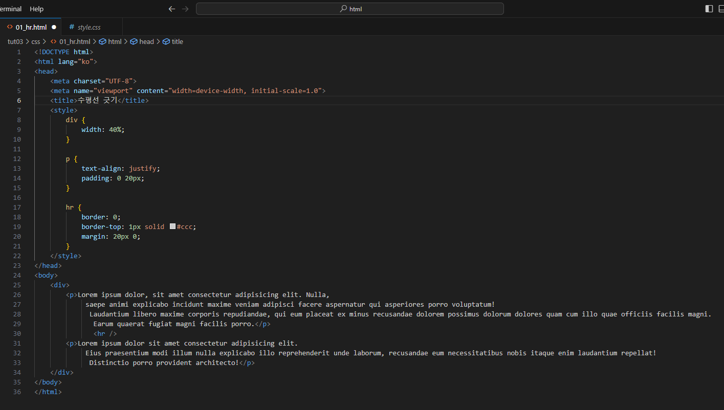 2. ! + tab : html 기본구조를 자동으로 생성 emmet