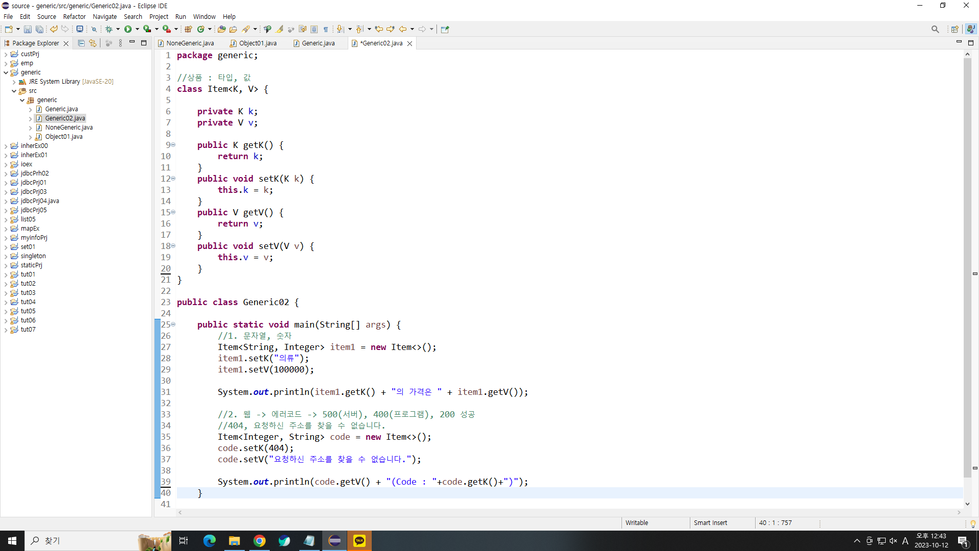 구현 : Generic문 간단한 예제로 구현