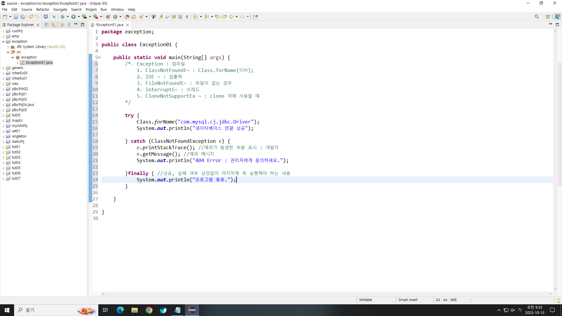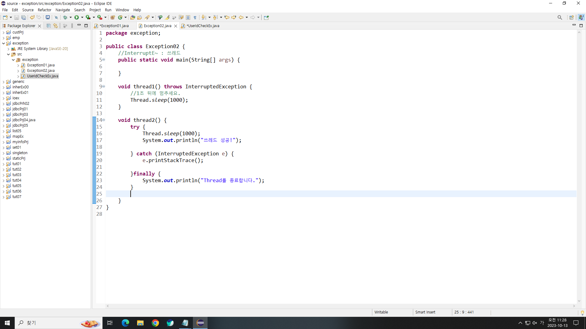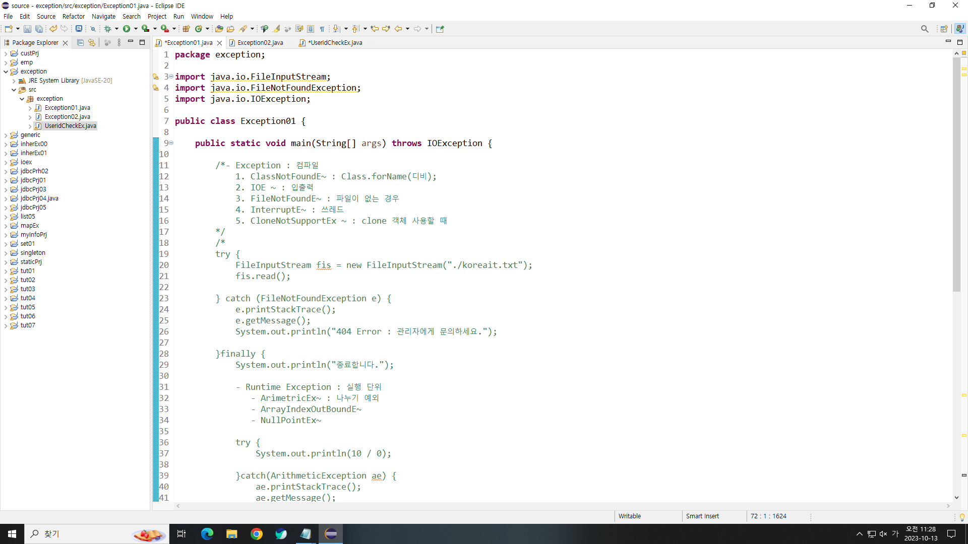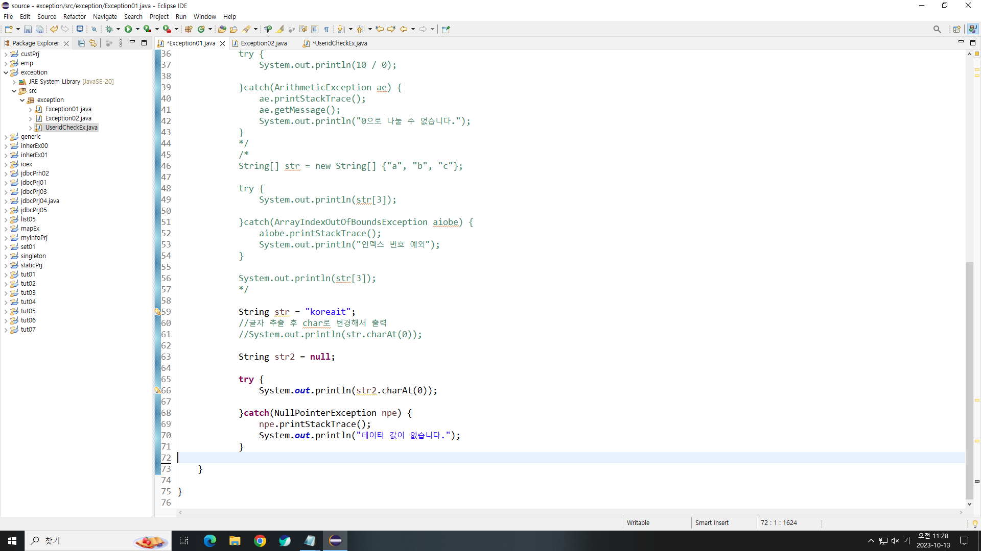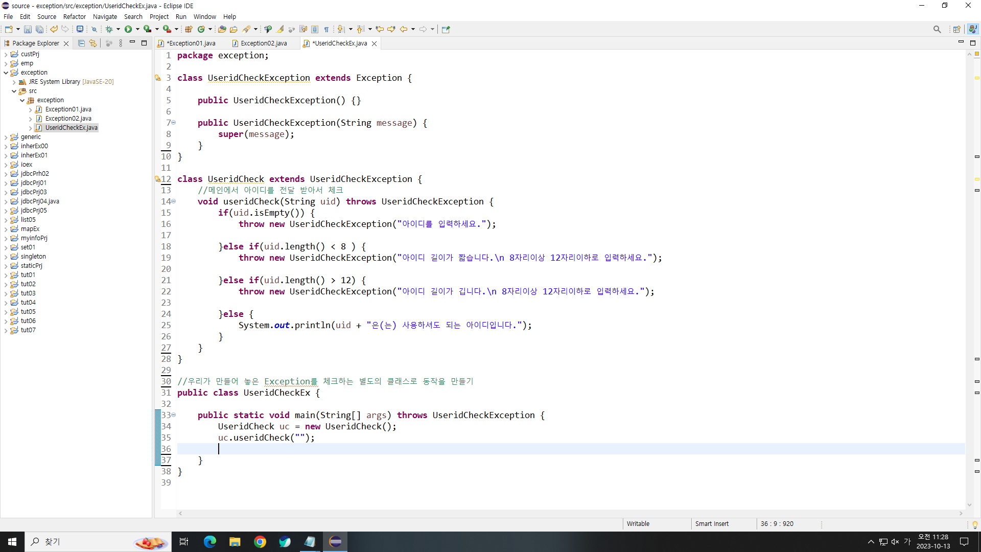 Exception 상속 받아서 생성자를 이용해서 예외 클래스 작성