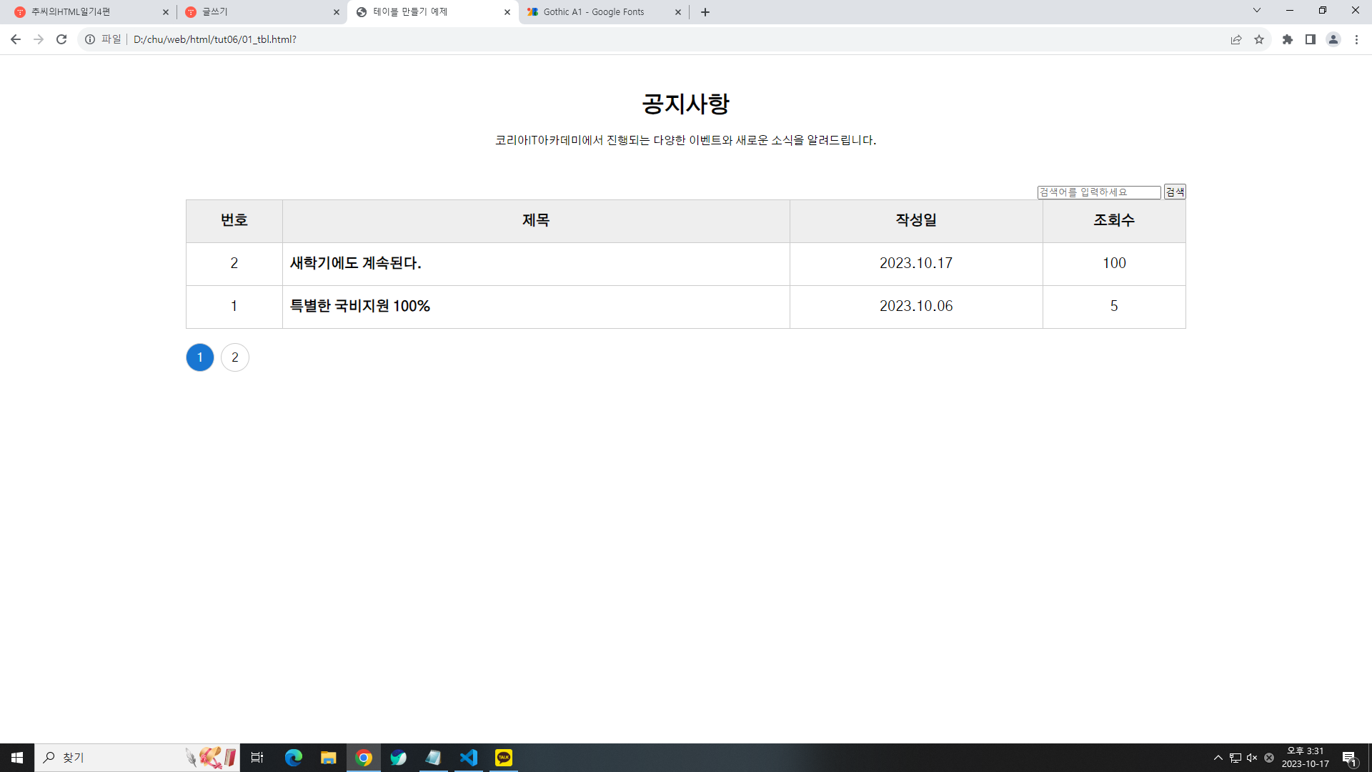 * 학원홈페이지를 참고해서 만듦