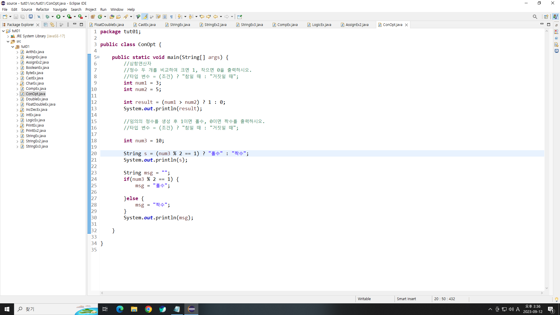 타입 변수 = (조건) ? "참일 때 : "거짓일 때";
