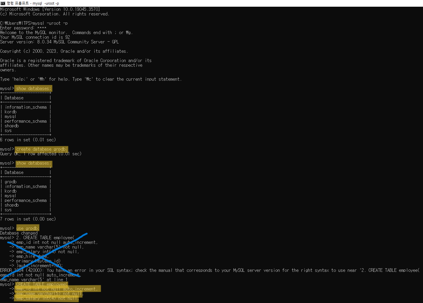 (2) form 되어 있는 view -> db생성 -> 테이블 생성