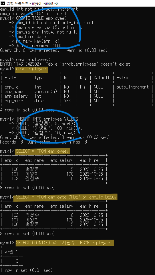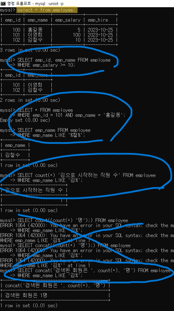 WHERE emp_id = 101 AND emp_name = '홍길동';