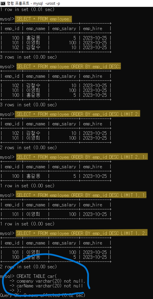 * 집계함수는 결과가 1만 출력되므로 ORDER BY, LIMIT 사용 X