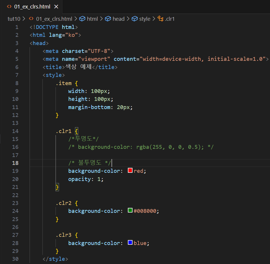 rgba : a는 색을 투명도 처리(0 ~ 1)