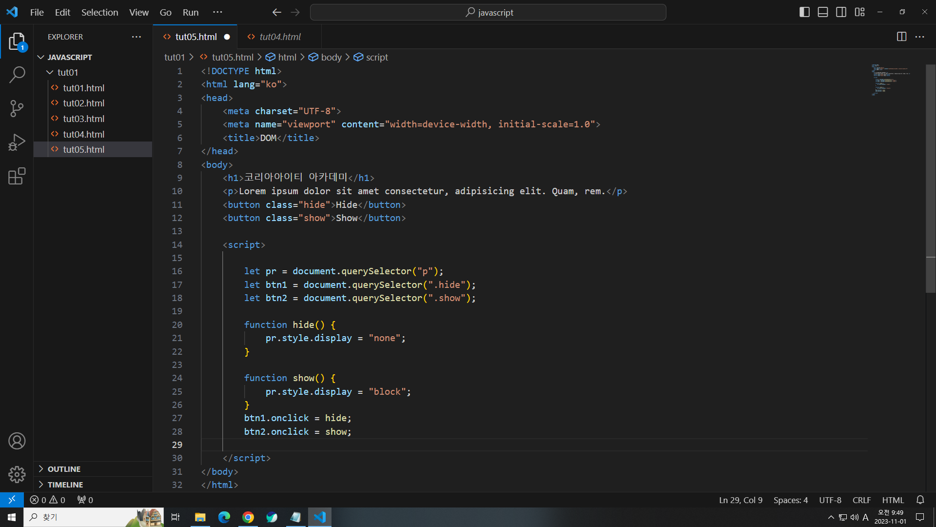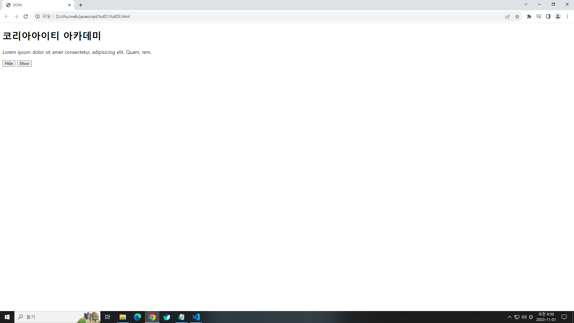 JAVASCRPIT>tut01>tut05.html : 버튼 클릭시 p태그 글자 숨기고 보이기