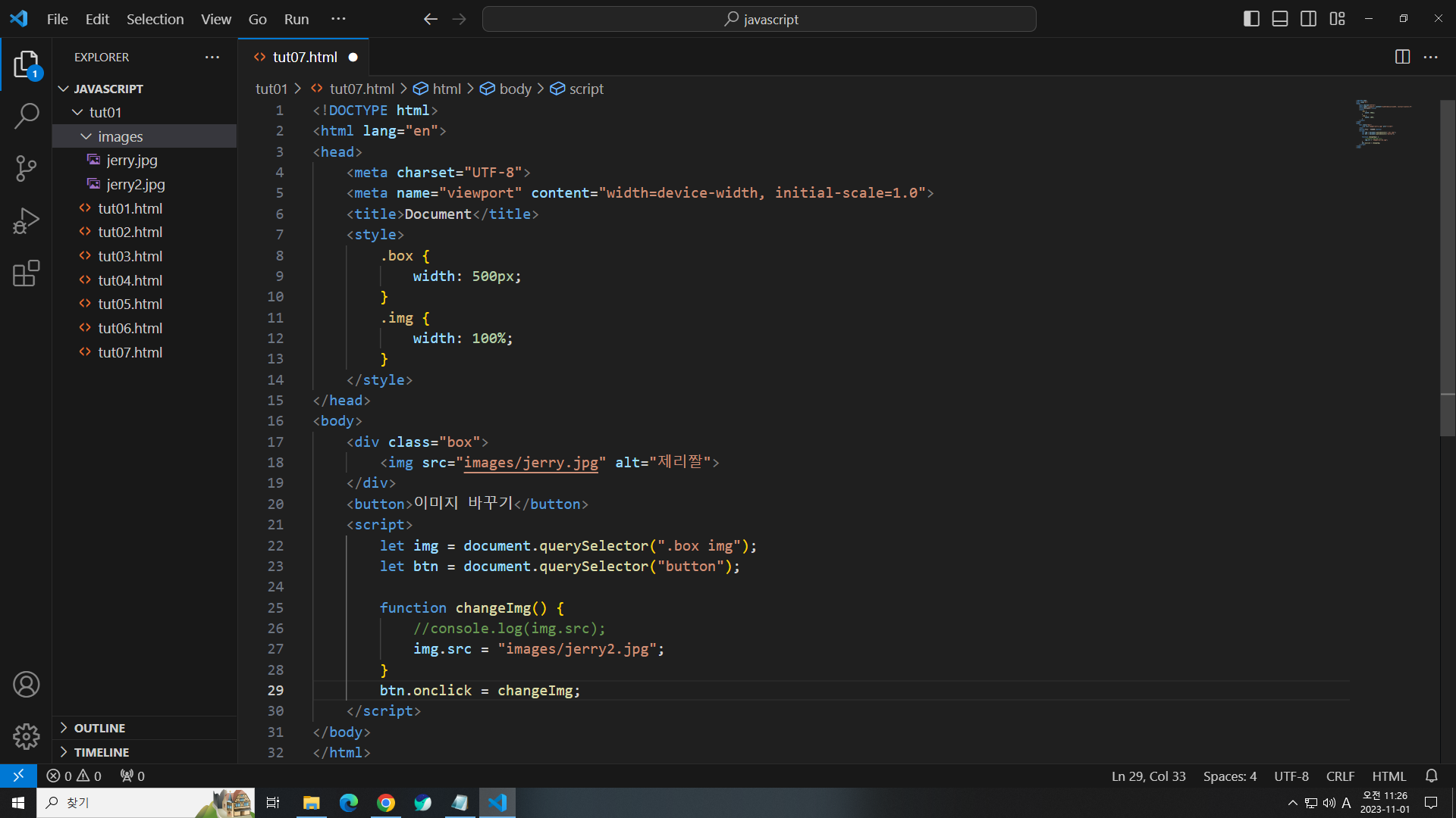 JAVASCRIPT>tut07.html : 버튼태그이용해서 이미지 바꾸기