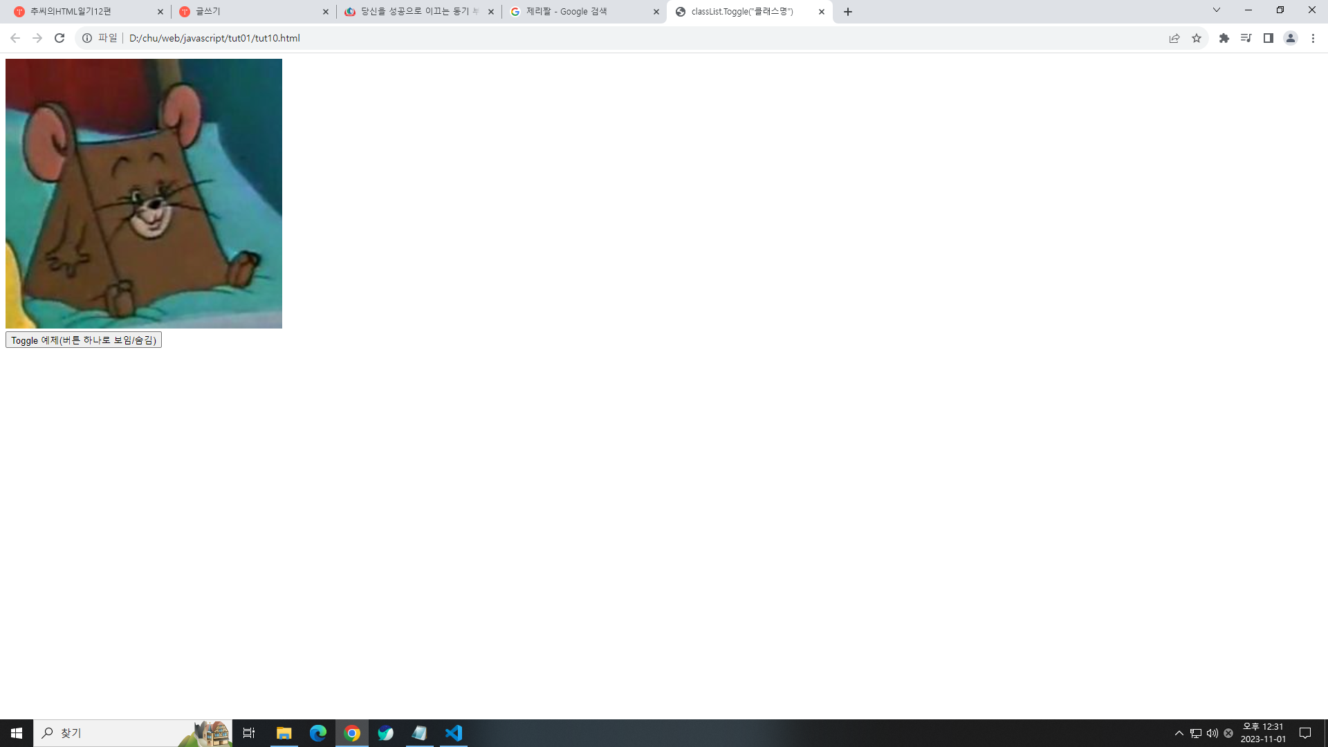 JAVASCRIPT>tut10.html : classList.toggle : 붙였다 뗏다 동시에 가능