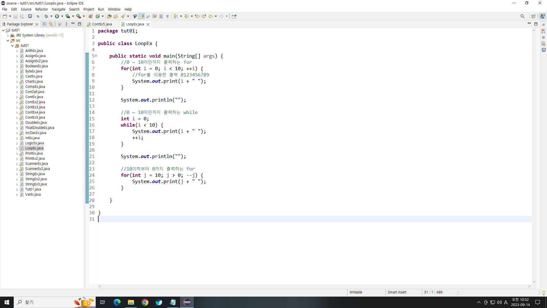 순서 : 초기값 -> 조건 -> 출력코드 -> 증감값