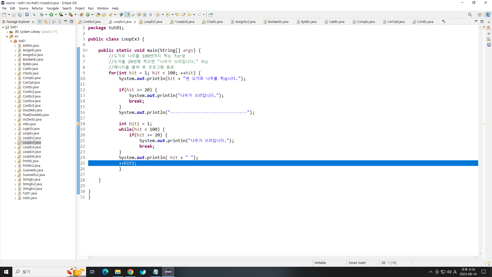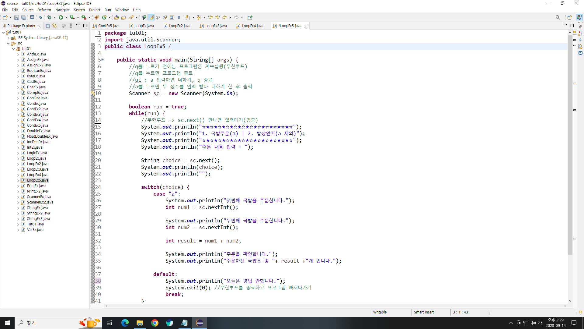 동작 멈춤 : x, Ctrl + c, System.exit(0);