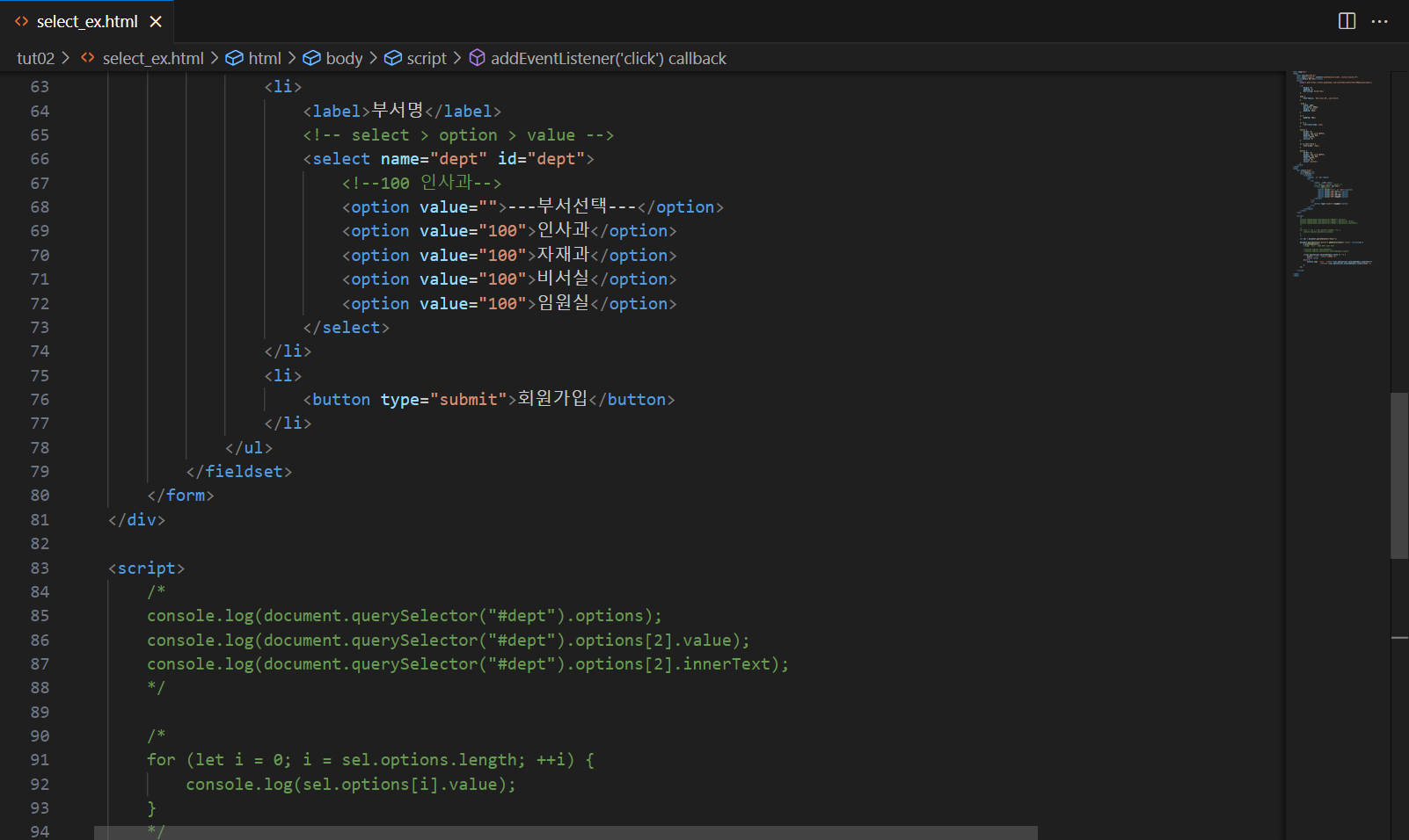 JAVASCRIPT>tut02>select_ex.html : 사원등록 페이지를 만드는데 부서명 선택없이 회원가입을