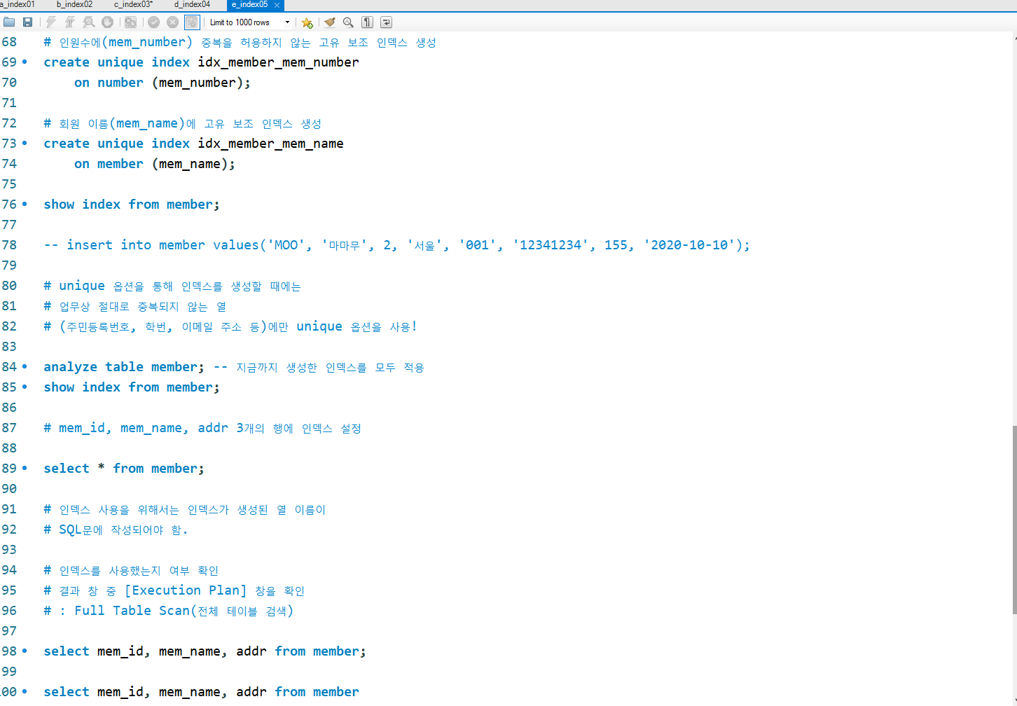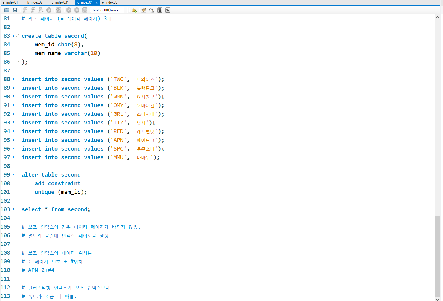 a_index01.sql : 인덱스의 정의와 종류