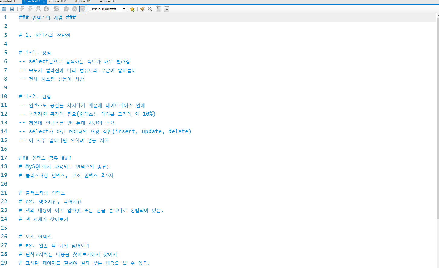 b_index02.sql : 인덱스의 장단점 과 종류