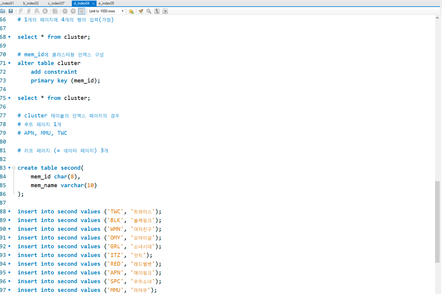 d_index04.sql : 균형트리와 노드 + 보조 인덱스