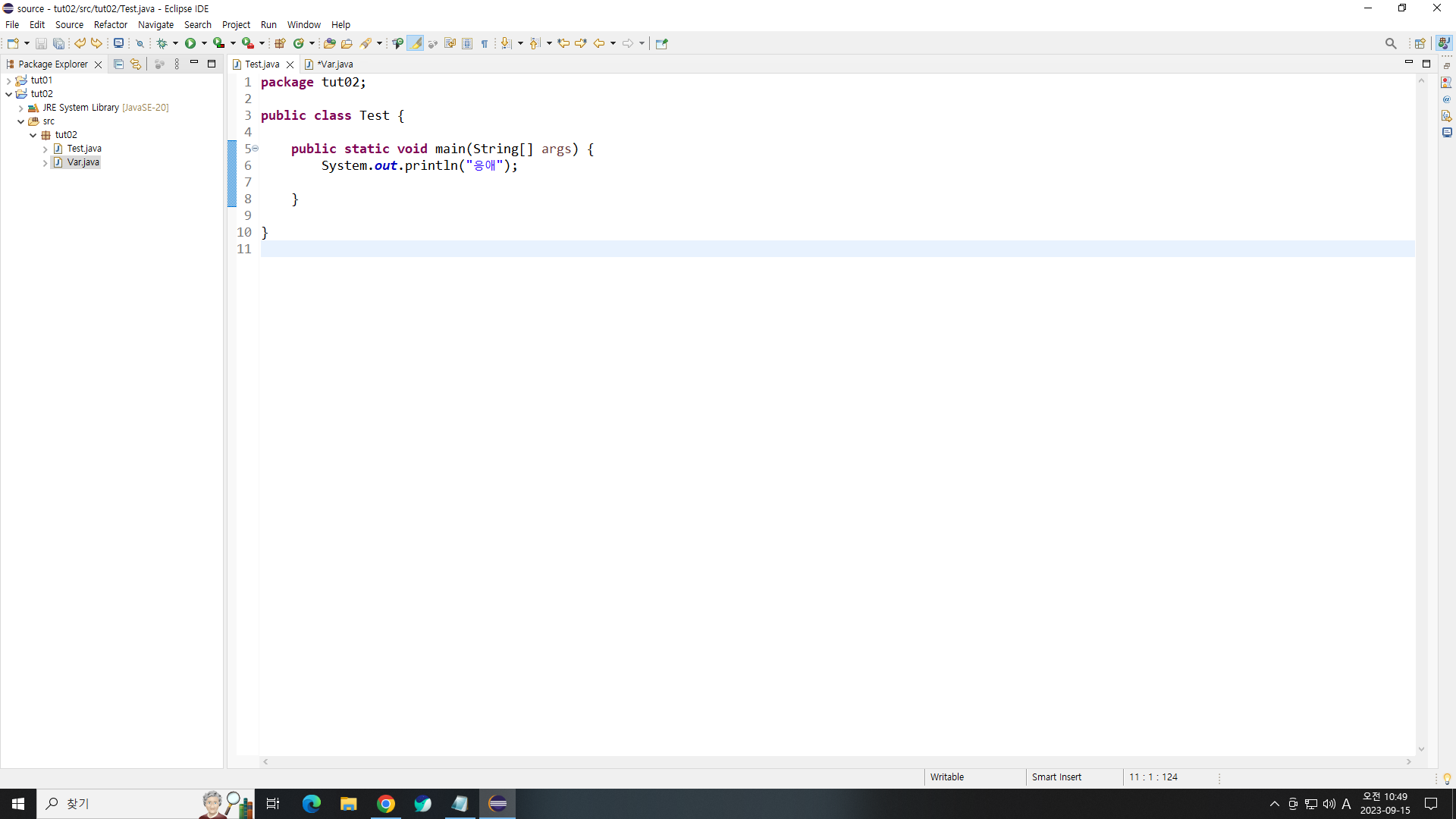 - 변수 값은 바로 위 중괄호 영역에서만 값을 사용