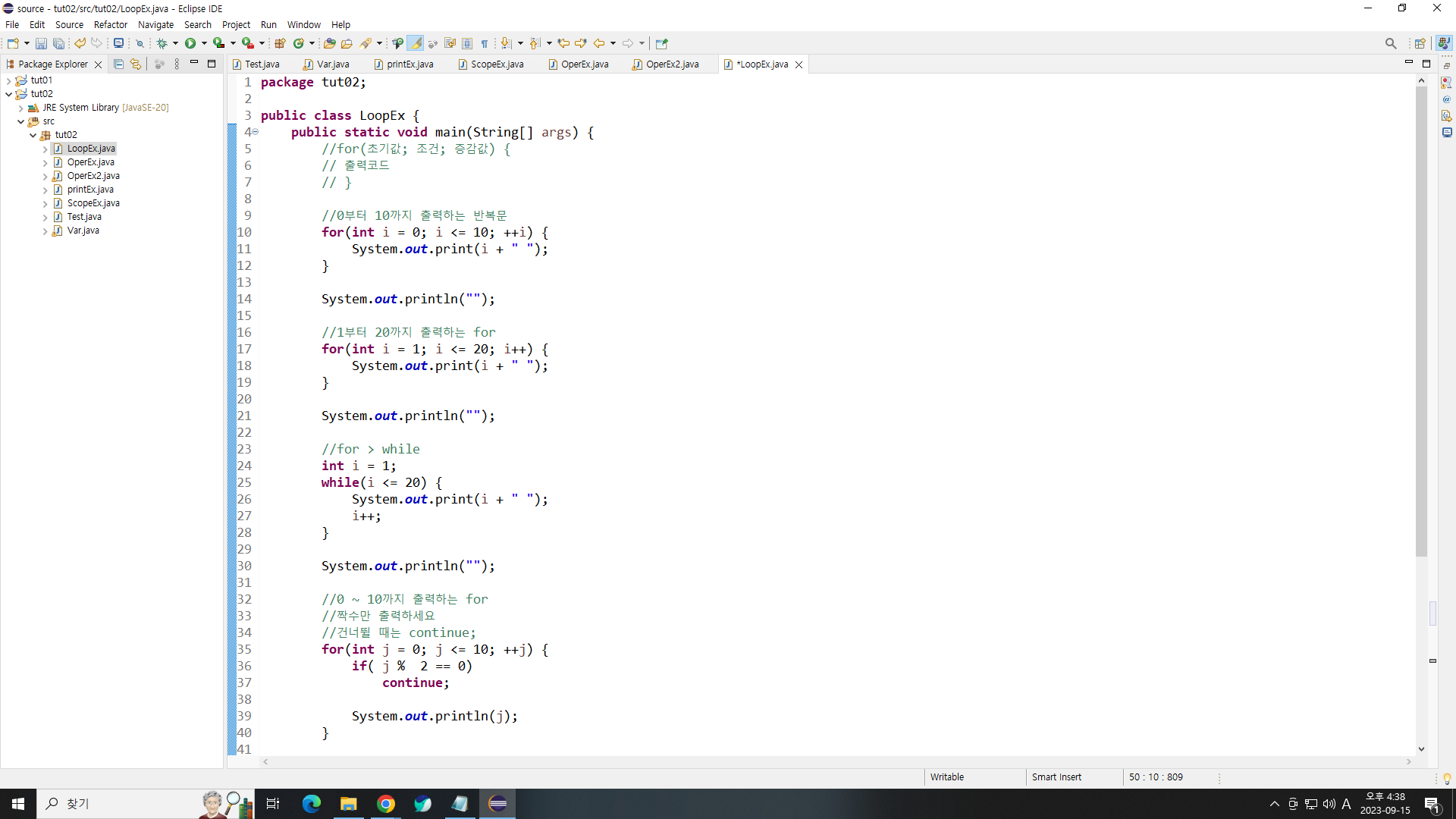 단, for()문은 오른쪽 {} 안에서만 값을 사용할 수 있다.