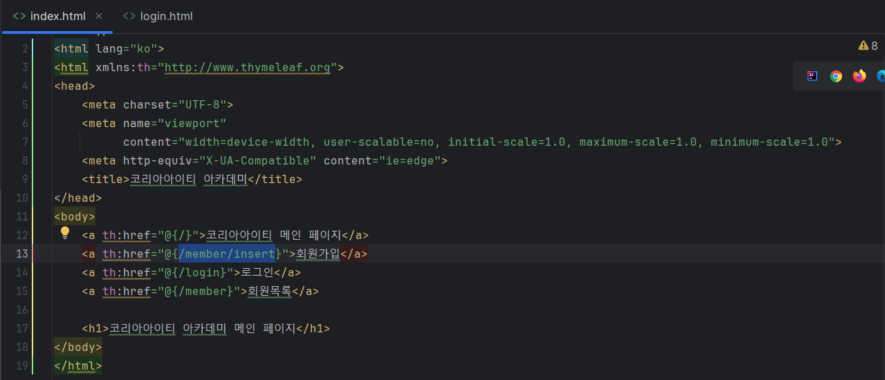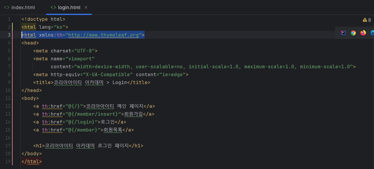 1. templets안에 html파일 생성 => index.html, login.html 생성