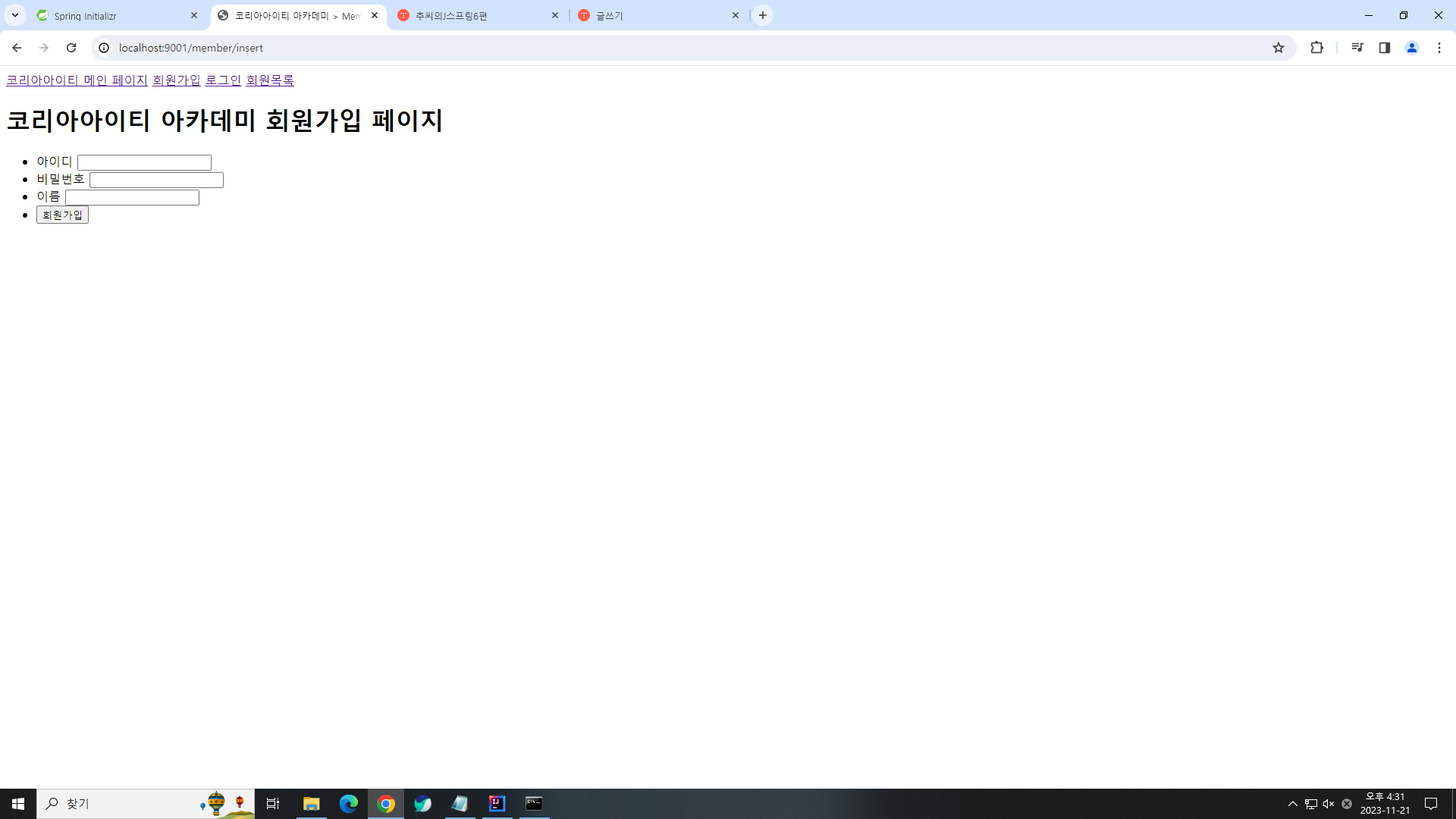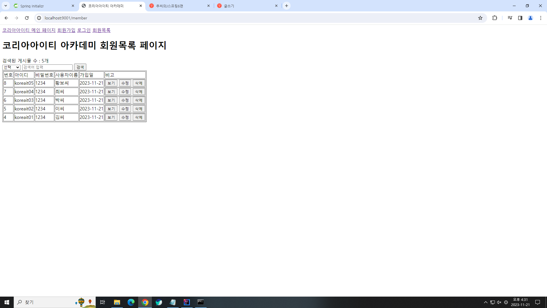 위페이지에서 회원가입을 진행하고 회원목록으로 넘어간다.