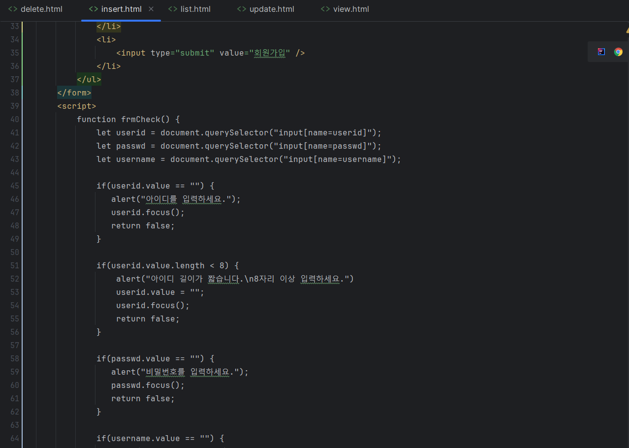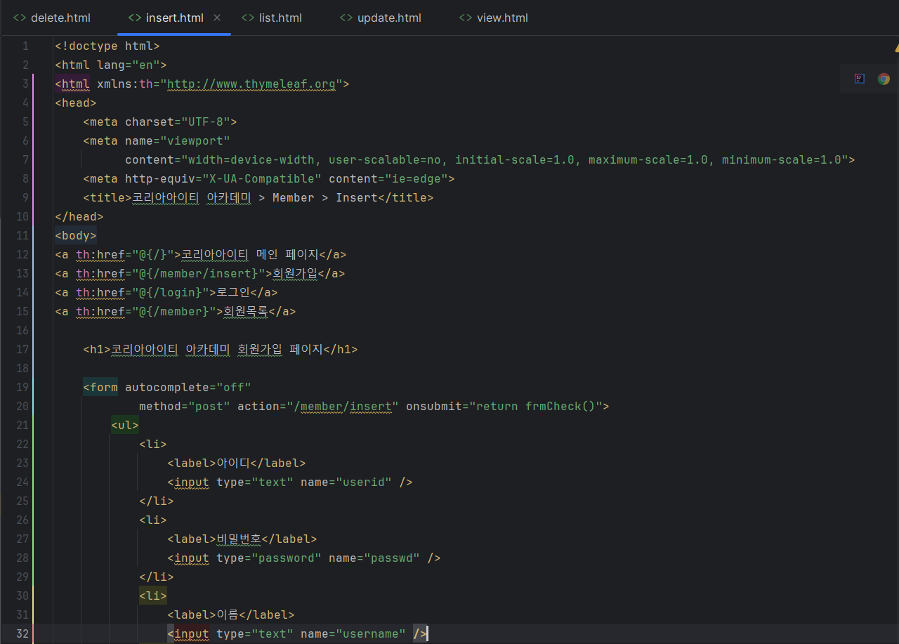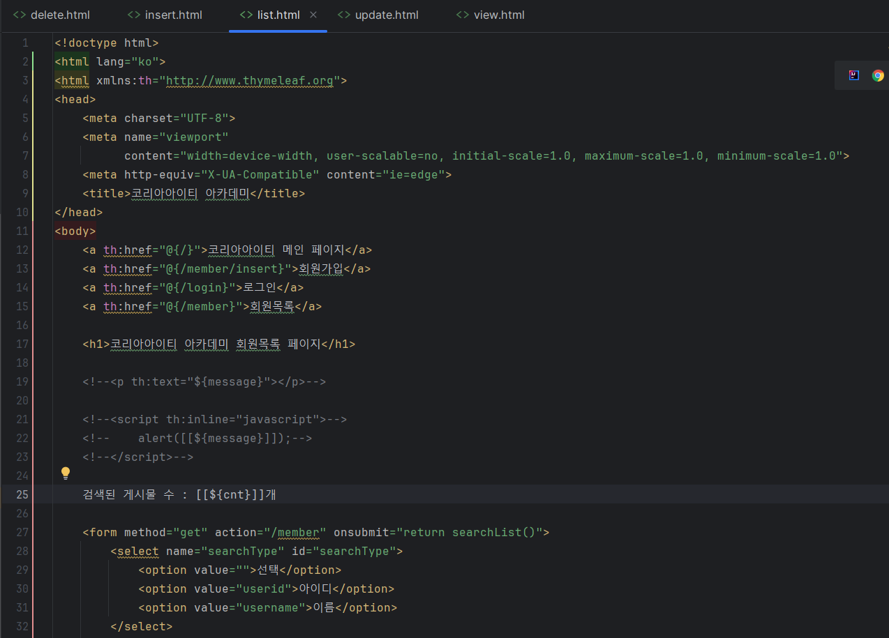 member안에 delete.html, list.html, view.html, insert.html, update.html 생성