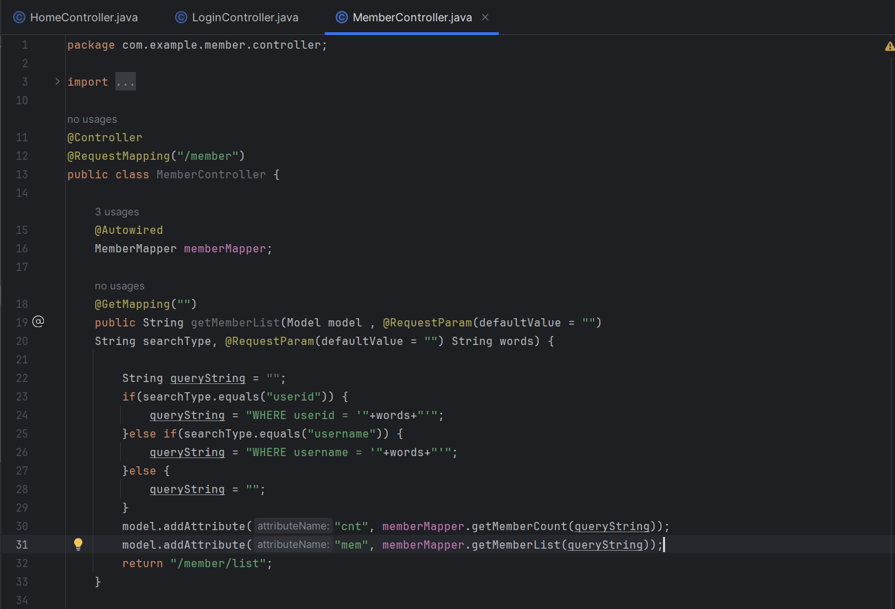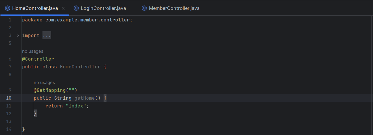 3. member패키지안 controller 패키지안에 MemberController.java 클래스 생성
