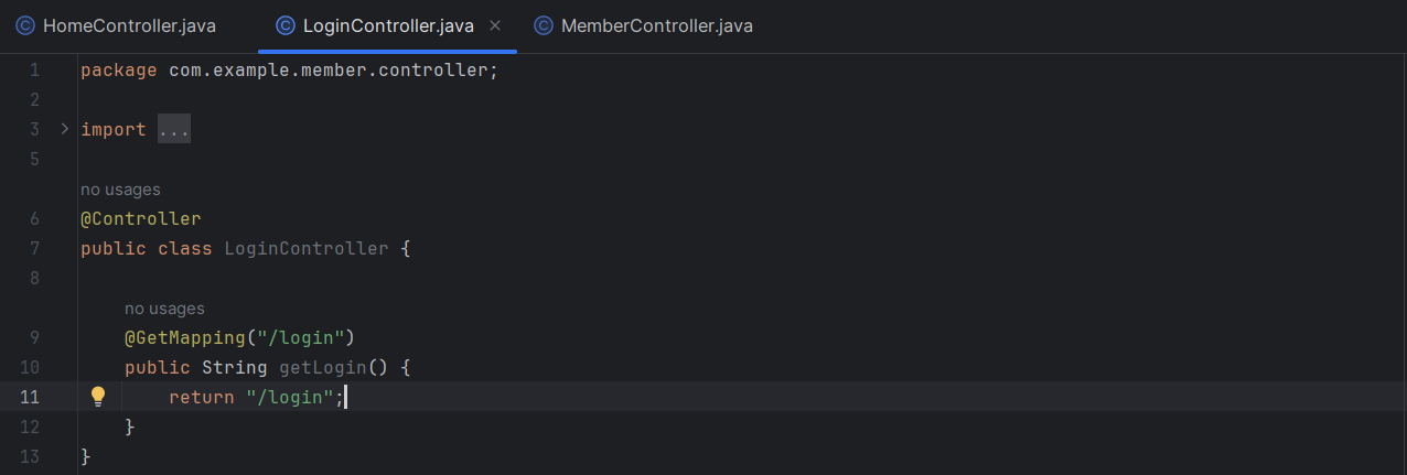 2. member패키지안 controller 패키지안에 LoginController.java 클래스 생성