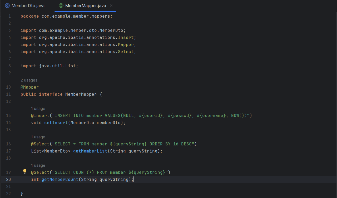 [mapper 생성] : member패키지안 mappers 패키지안에