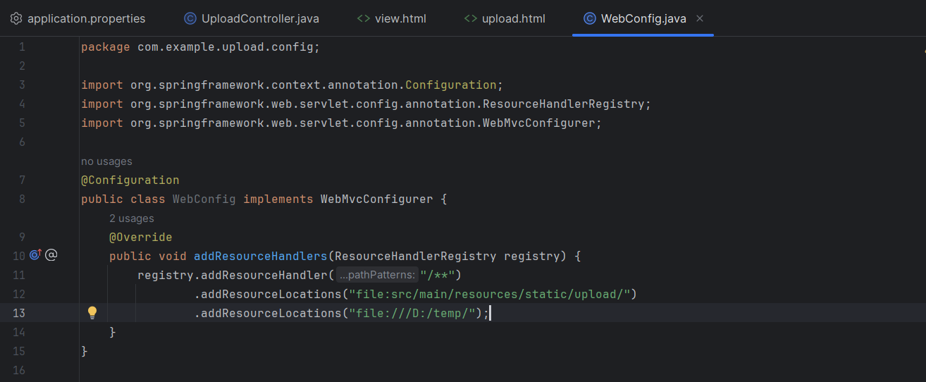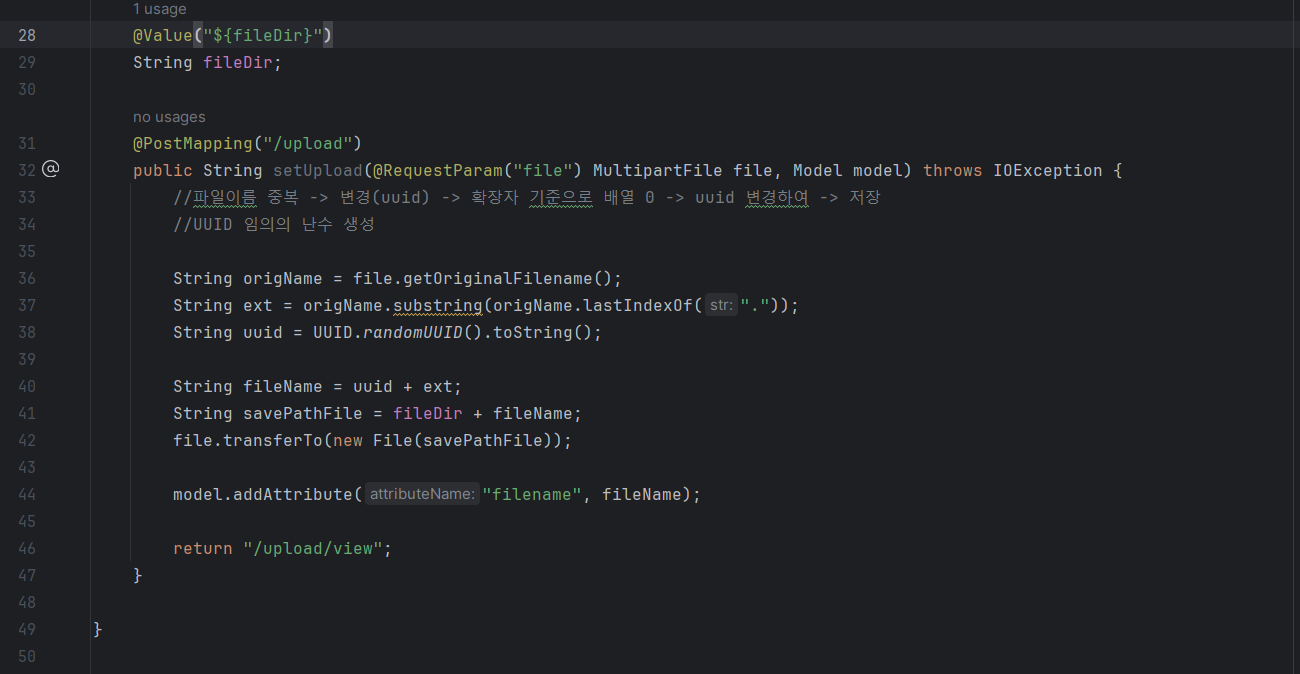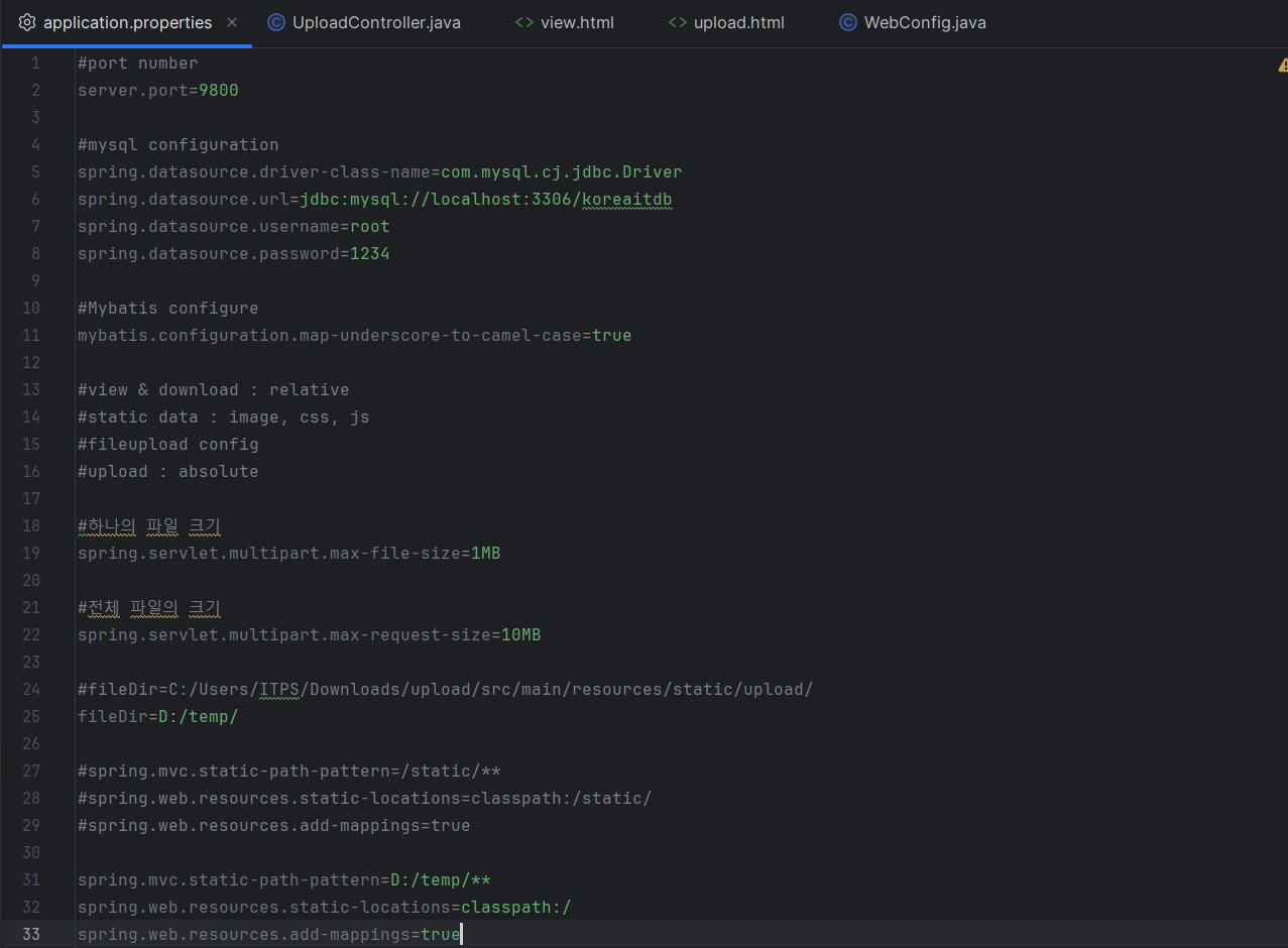 여기서 파일을 어느경로로 저장할 것인지 정하고 controller랑 webconfig로 넘어가서 연결해준다.