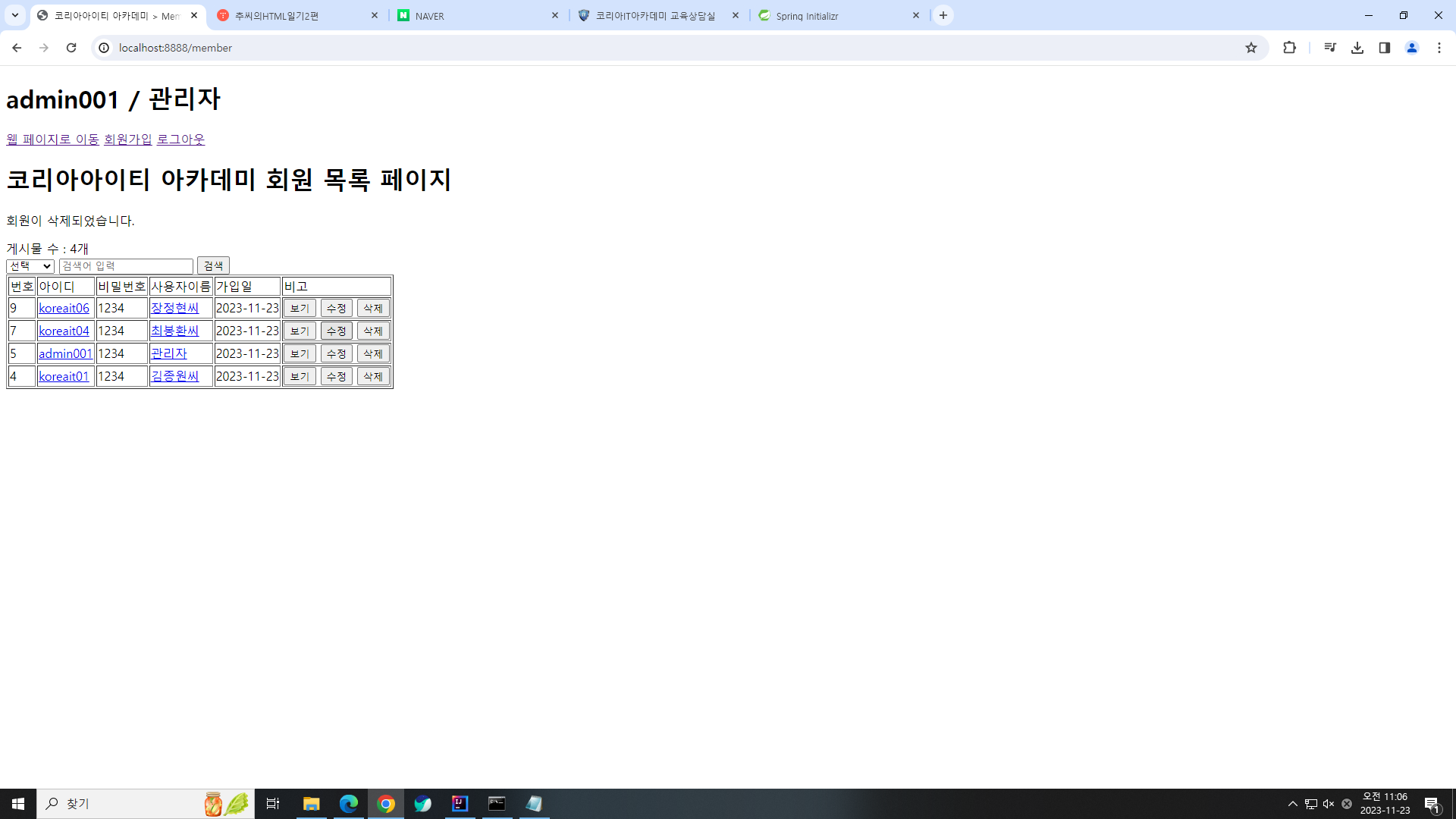이로써, 보기, 수정, 삭제의 완벽한 콜라보 웹사이트의 기능하나를 또 구현함