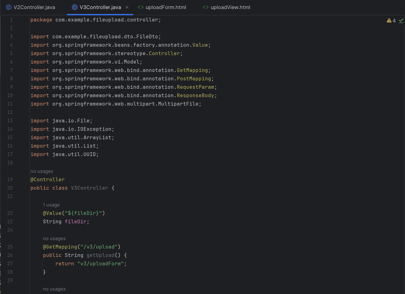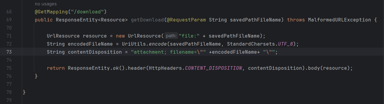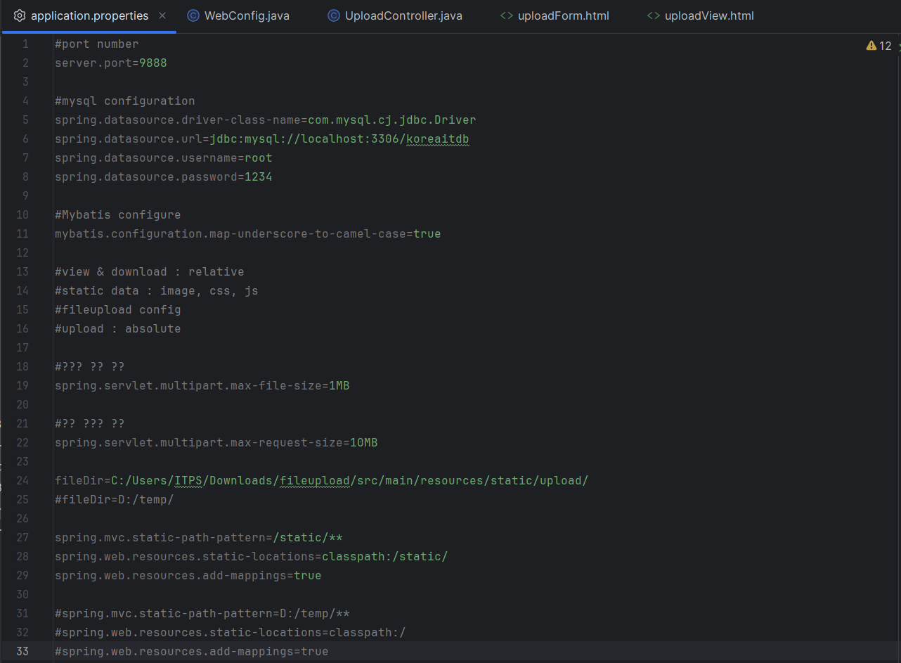 [UploadController.java] : 언제나 그렇듯 메인 동작은 여기서 + 파일저장경로 + 파일이름 + 확장자명 변수처리