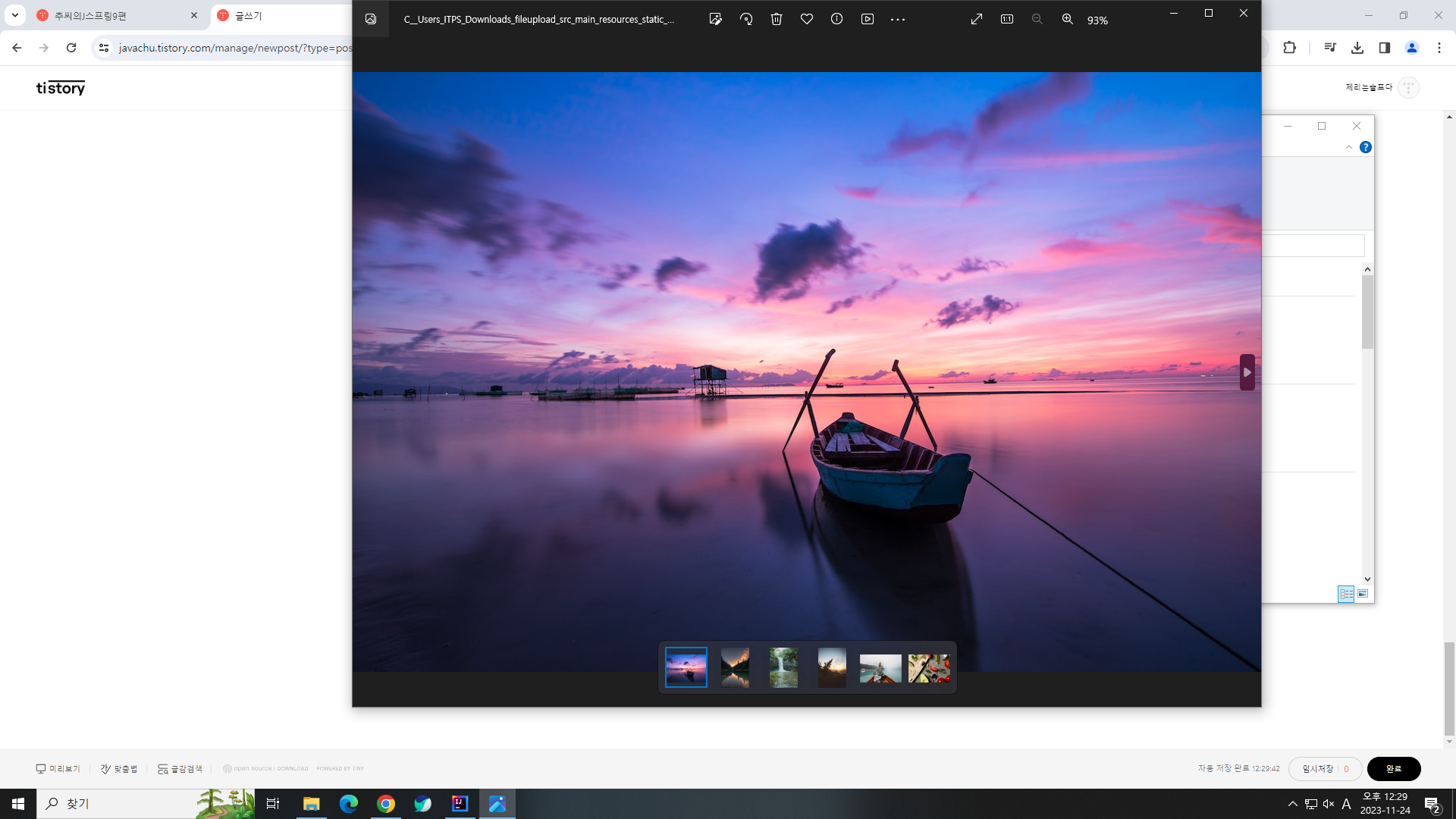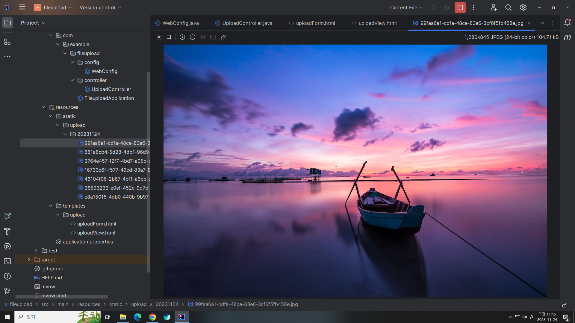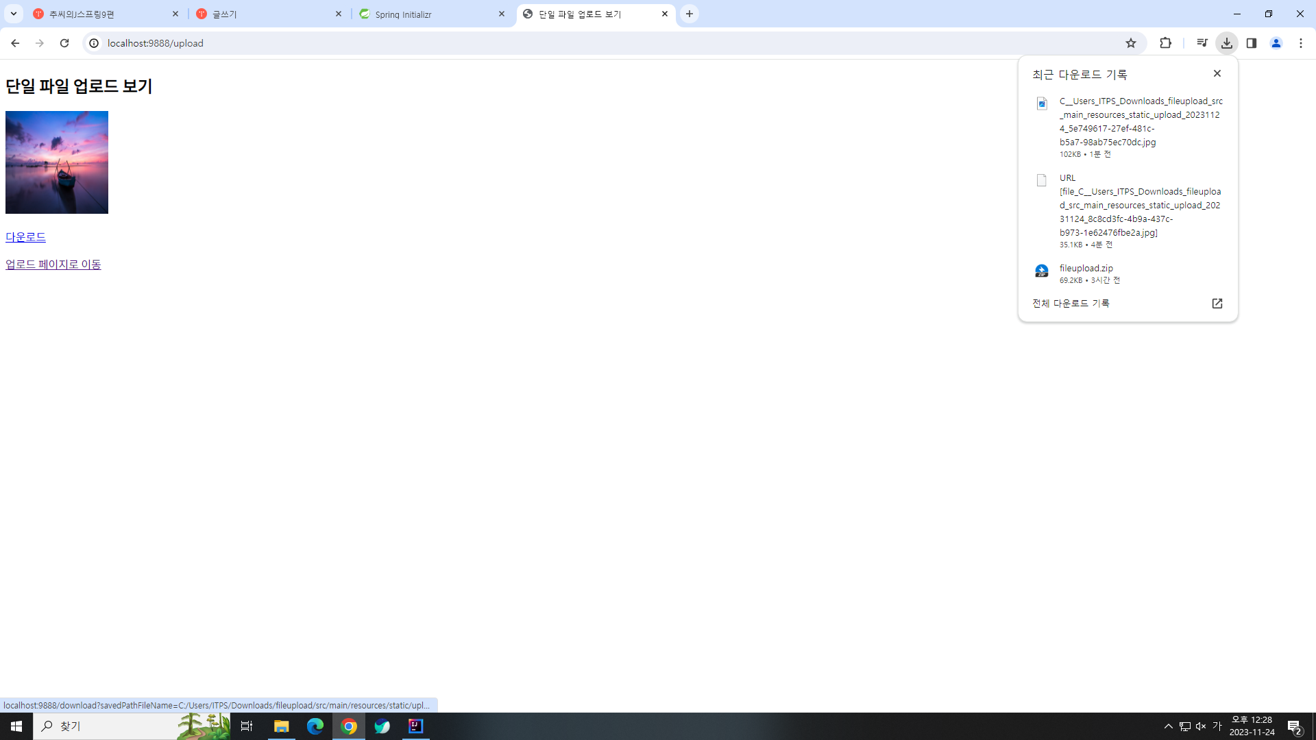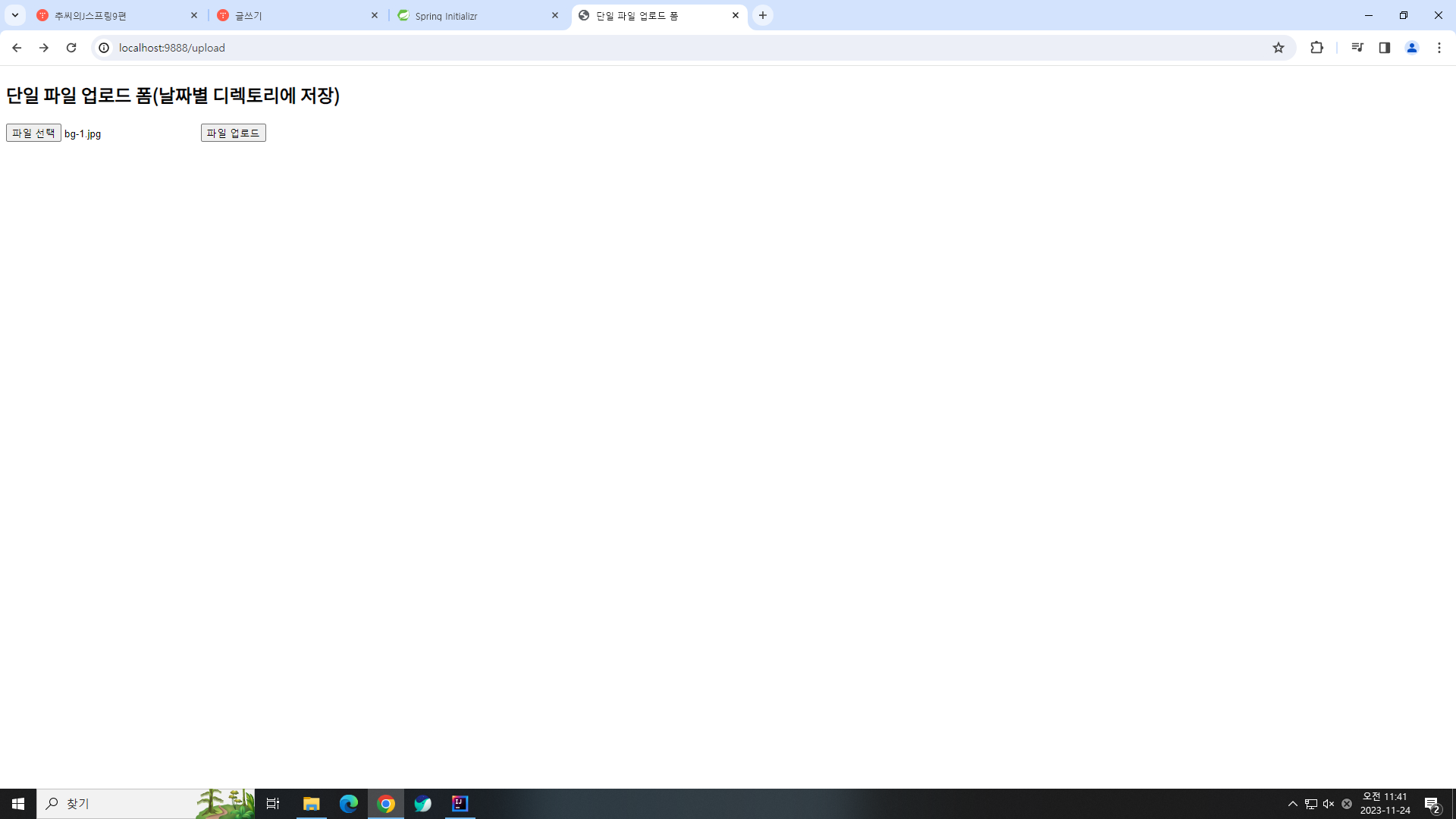* 파일선택 클릭 후 원하는 파일 선택 후 업로드를 누르면 아까 위에서 지정한 디렉터리에 사진저장 및